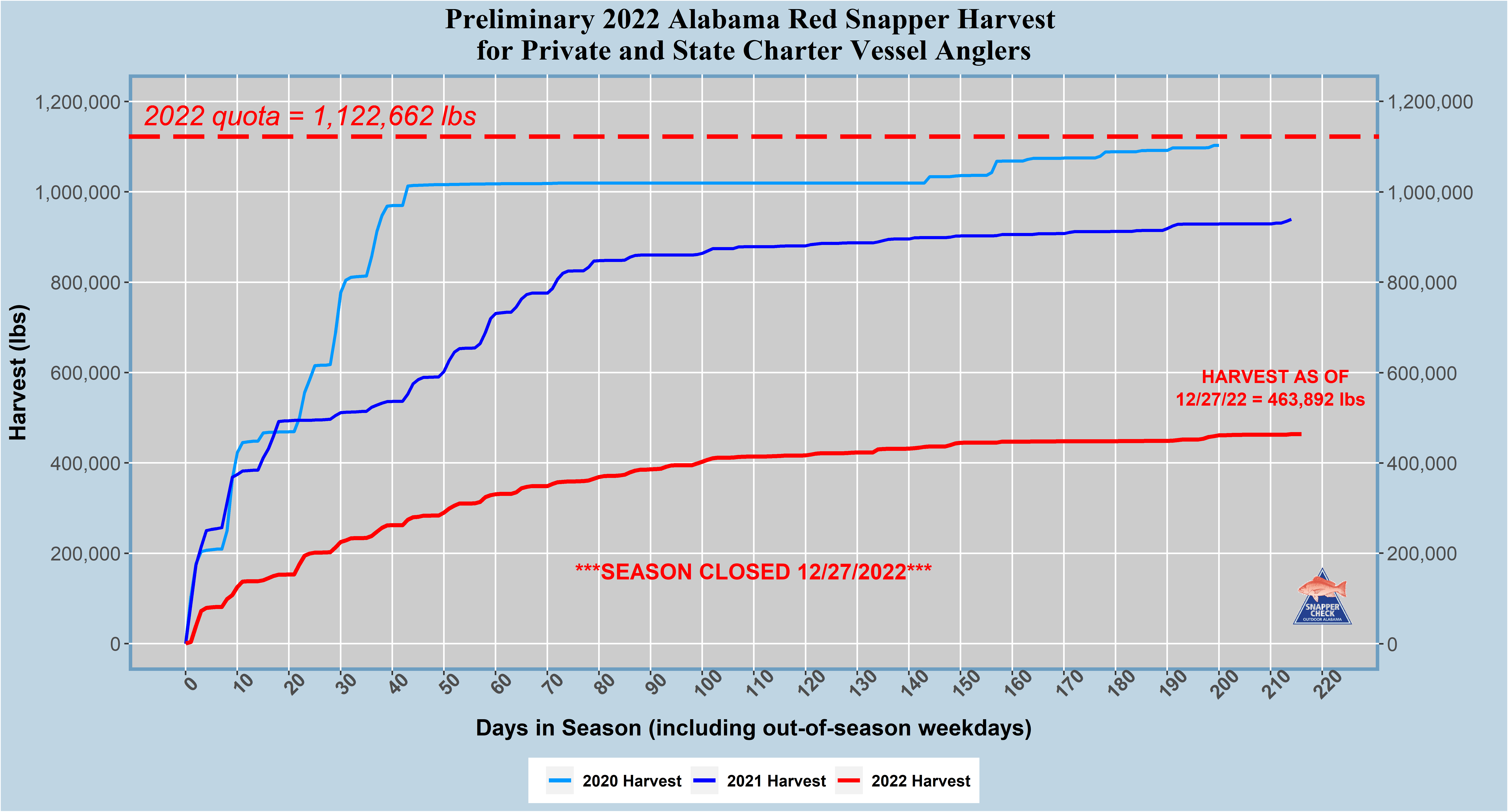 Landing summaries for private and state charter vessels will be posted below throughout the 2022 red snapper season.
