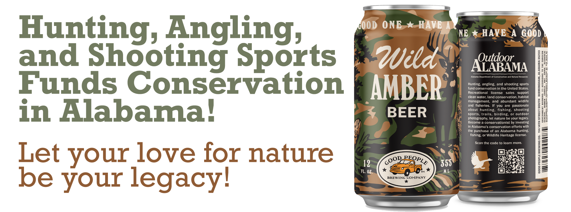 Let your love for nature be your legacy. Grab a Wild Amber from Good People and then go one step further. Become a conservationist by purchasing an Alabama hunting, fishing, or Wildlife Heritage license today.