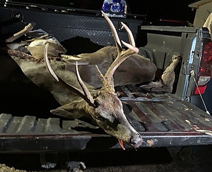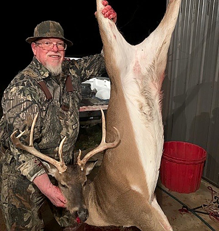 “On one of our hunts, we took five bucks, and one of them was (what they thought) was a nice, wide 8-point,” Kelley said. “We took pictures and got him back to the skinning shed. I said something about the tarsal glands not even being black; it’s not even rutting. Somebody else said something about how skinny his neck was.