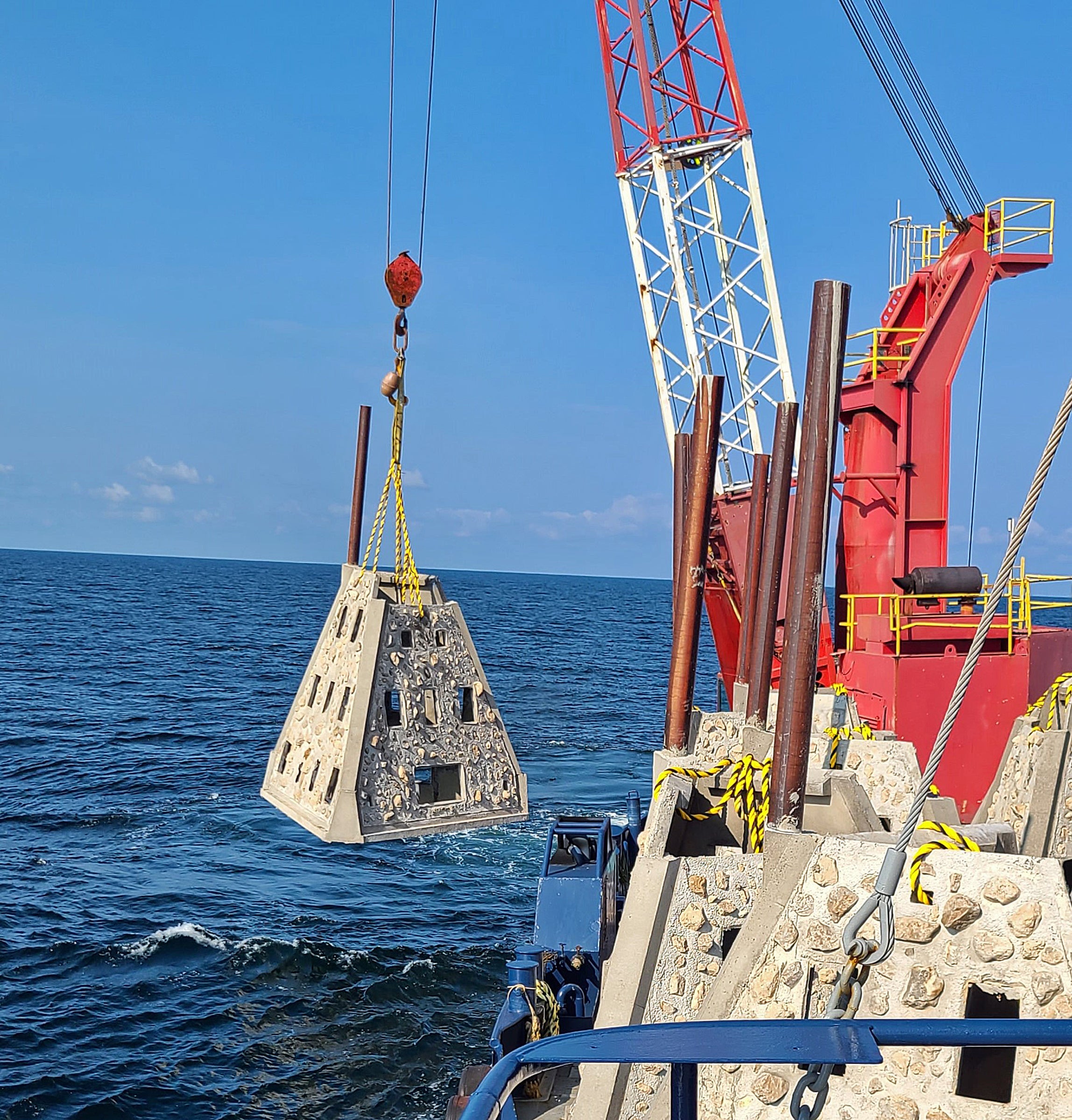 With permits in hand and contracts executed, MRD started deploying artificial reefs in the new reef zones on July 30, 2021.