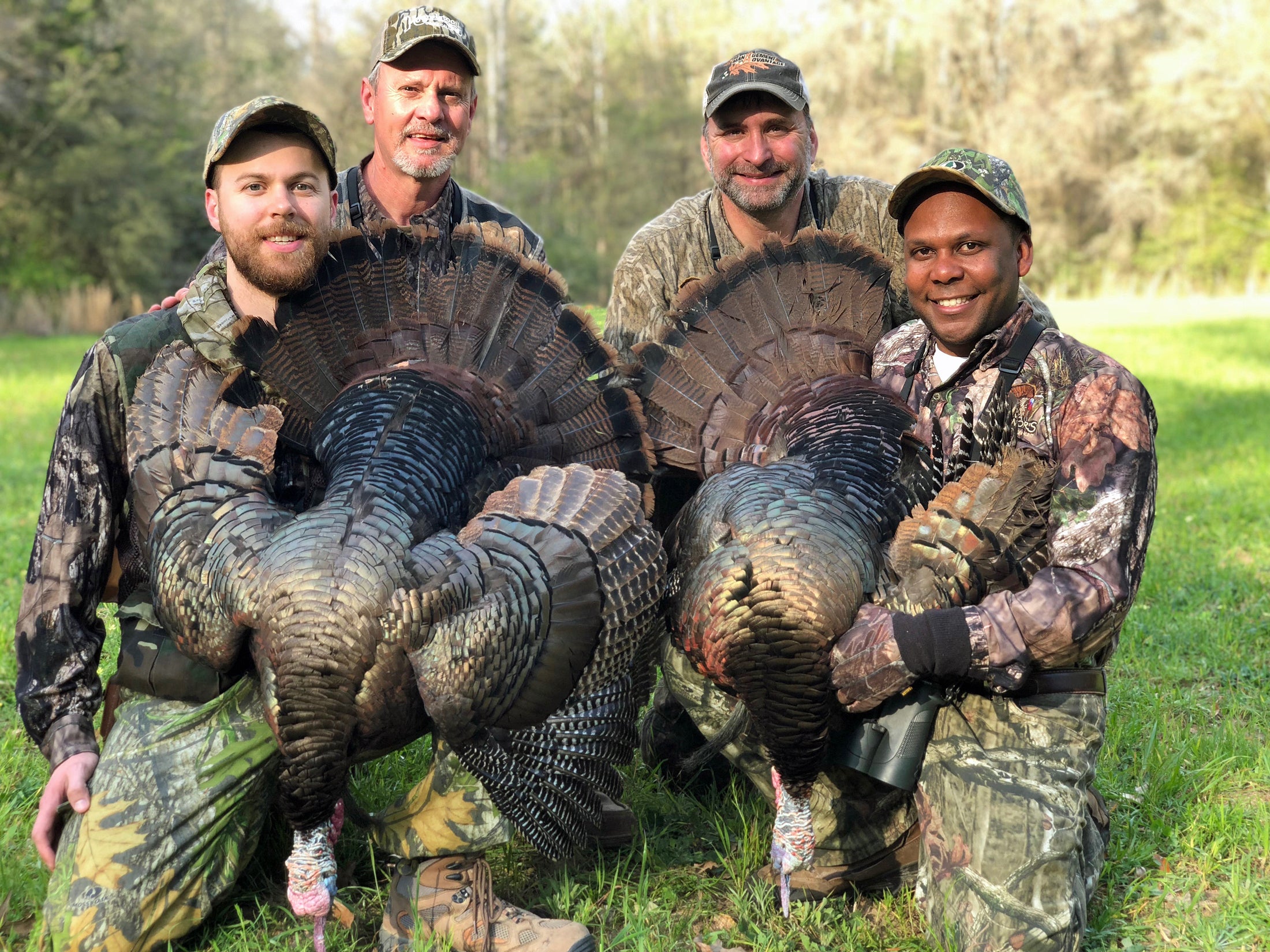 “My heart starts pounding a bit,” said Arnold, who was the primary shooter on this hunt. “Then these two gobblers came in in full strut. They weren’t gobbling. We wanted to try to get a double, so we waited for the turkeys to get closer. Then they came to a point and started to go back. That’s when Al (Mattox, his mentor) gave me the instructions to take it. I took my shot. Then everything was in slow motion. Then everything went fast forward and the turkey flopped.”