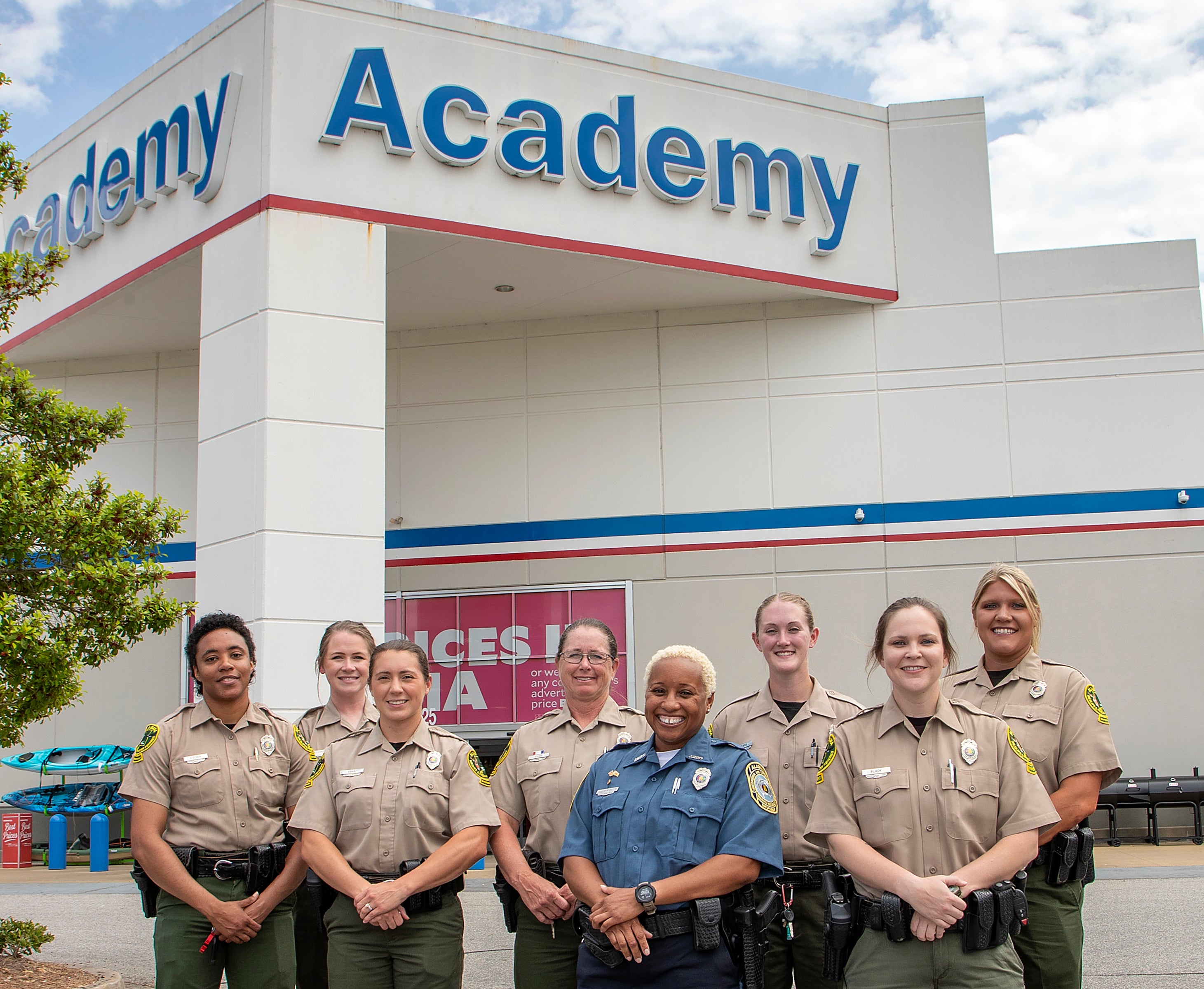As part of the SEC Softball Tournament last week at Auburn University, eight female Conservation Enforcement Officers (CEOs) from the Alabama Department of Conservation and Natural Resources (ADCNR) were honored during the tournament and with a shopping trip by Academy Sports + Outdoors at its Auburn location.