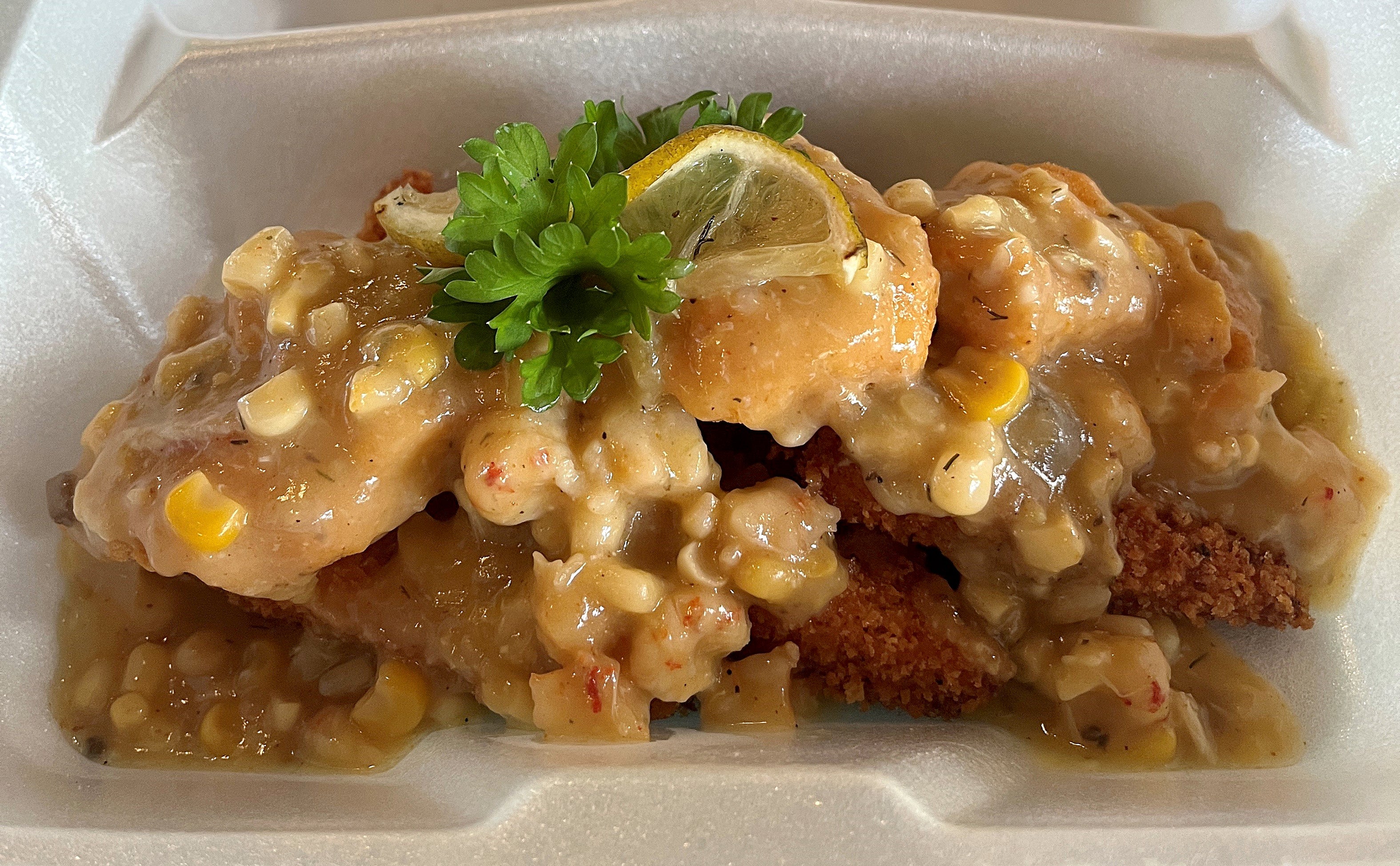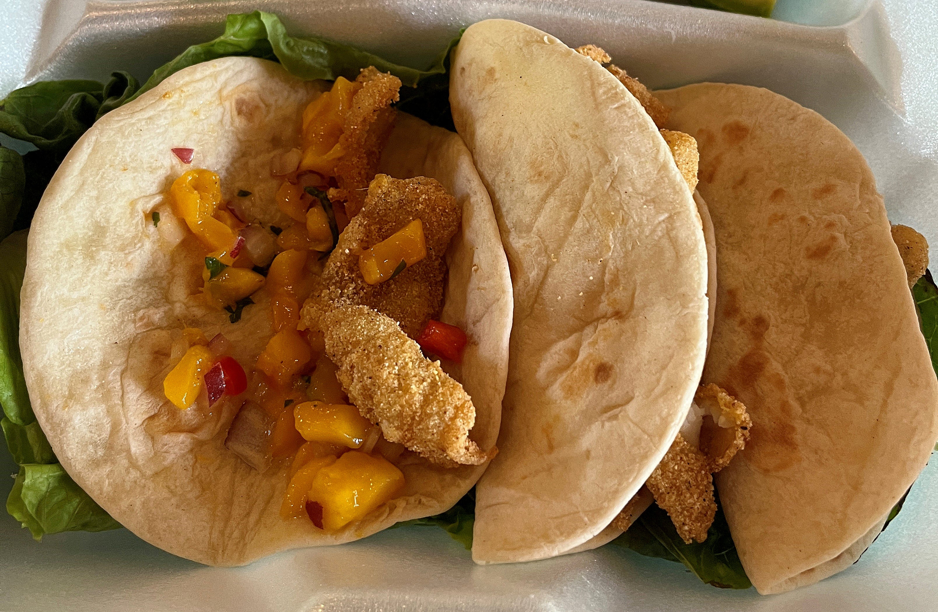 “We used spotted bass caught yesterday (the day before the finals) and cleaned,” said Andrew Harp, head cook on the team from Lake Martin. “They’re fresh. We took a flour tortilla, topped it with shredded cheese and put it on the grill to melt the cheese. We love the grill taste. The base is Conecuh sausage, followed by the fried fish. We use a Zatarain’s fish fry with a little added spice. Then we top that with a custom slaw with green and red cabbage. Then we drizzle Sriracha mayo and cocktail sauce on the top. And we top that off with a lot of love.”