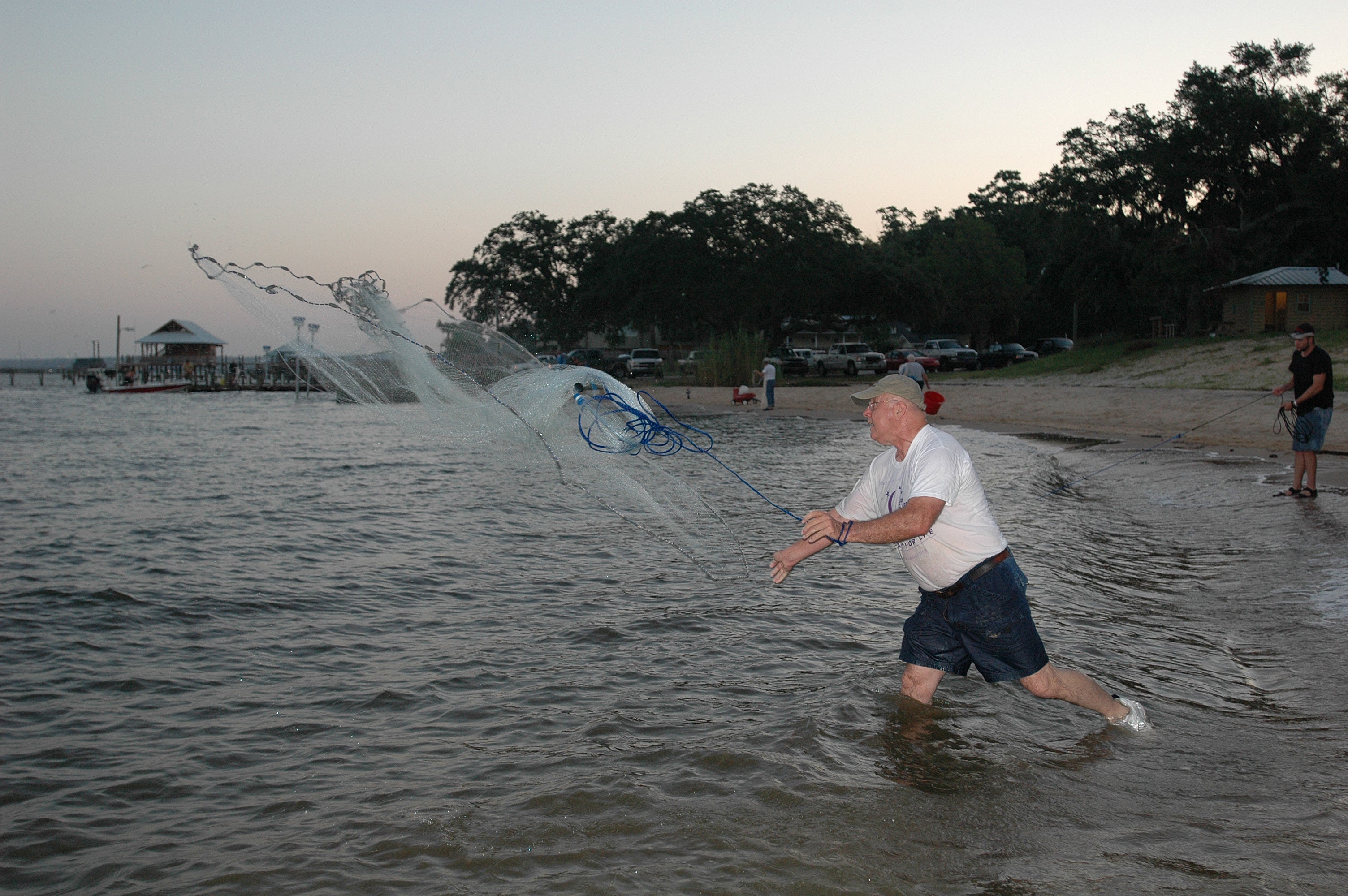 Because of a significant decline in the flounder population in the previous decade, MRD changed the size and daily creel limit for flounder to five per person per day with a minimum size of 14 inches total length. The recreational limit on shrimp with heads on is one five-gallon bucket per day. The limit on blue crabs is one 5-gallon bucket per day with a 5-inch minimum carapace (shell point to point). All jubilee participants who are 16 to 64 years old who harvest shrimp by cast net or harvest any finfish like flounder, speckled trout and redfish are required to have a saltwater fishing license, and those 16 and older are required to have a saltwater angler registry.