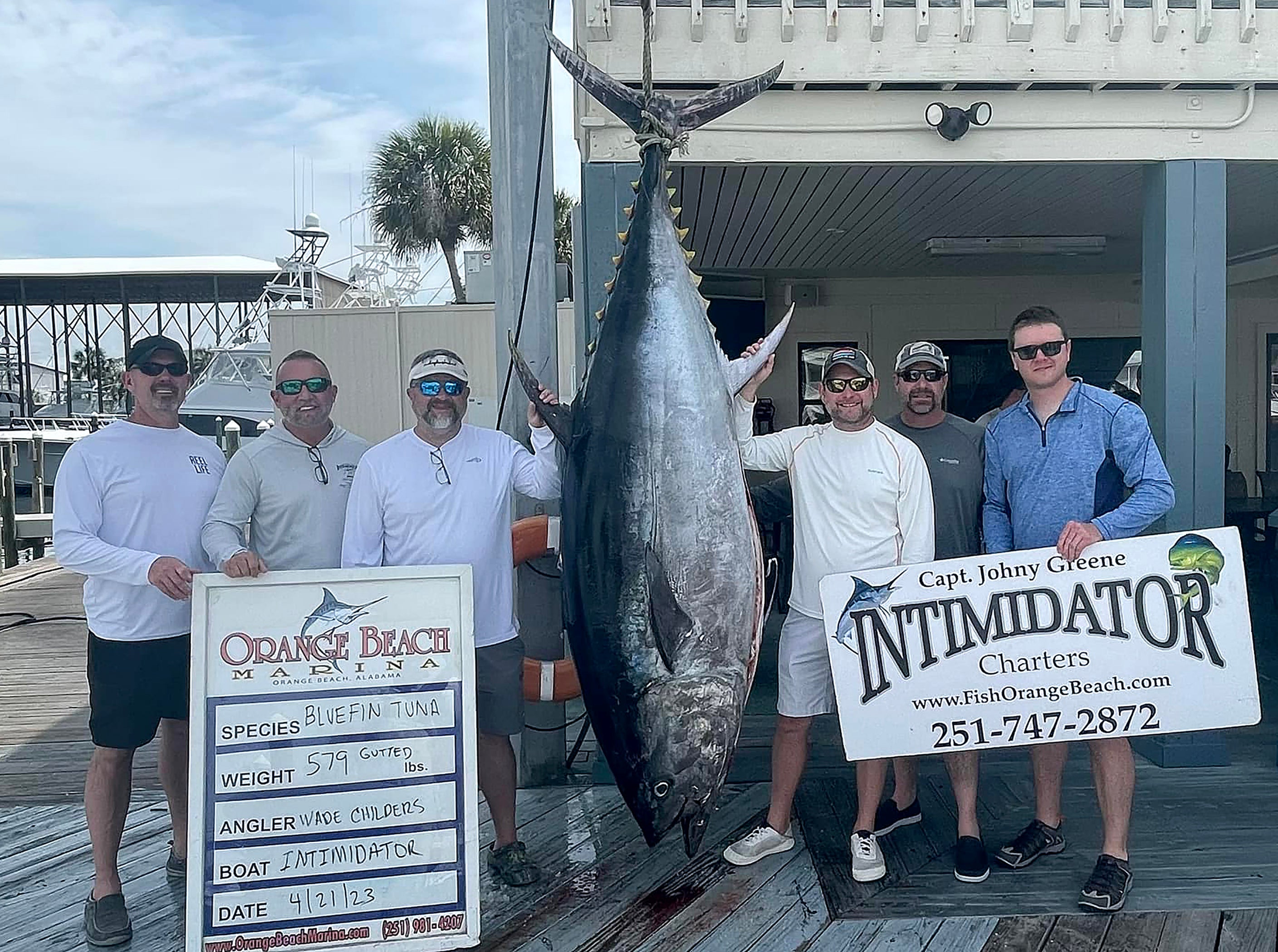 Johnny Greene has been a captain on charter boats in the Gulf of Mexico for the past 33 years and has landed his share of the Gulf’s bounty. But recently something happened on his boat, the Intimidator, that had never happened before. Greene and crew unloaded a 600-pound-plus bluefin tuna at the Orange Beach Marina dock.