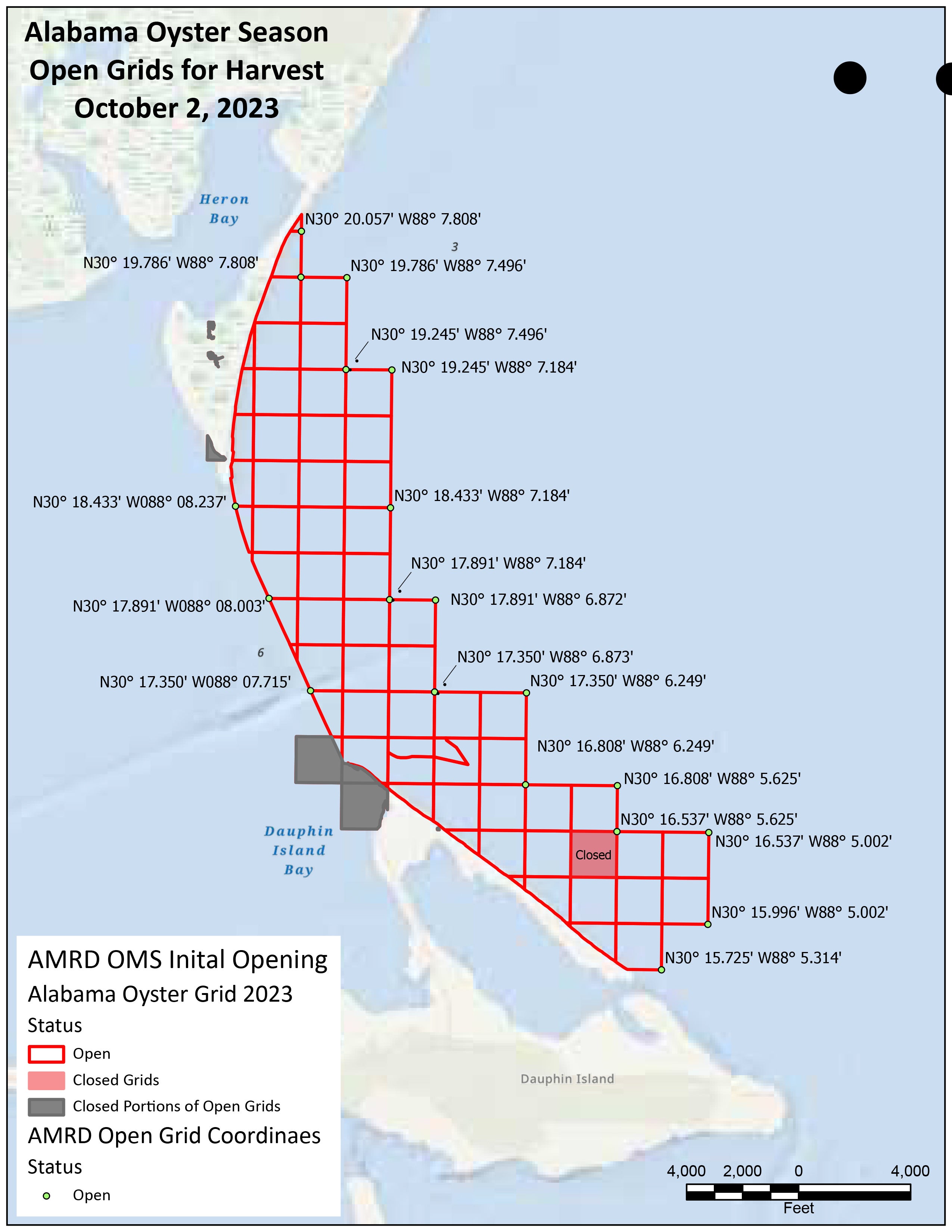 Harvesters can view their locations and the open harvest areas with Alabama’s Oyster Management Station (OMS) Oyster Grid Map. A link to the map is available at www.outdooralabama.com/oysterharvest.