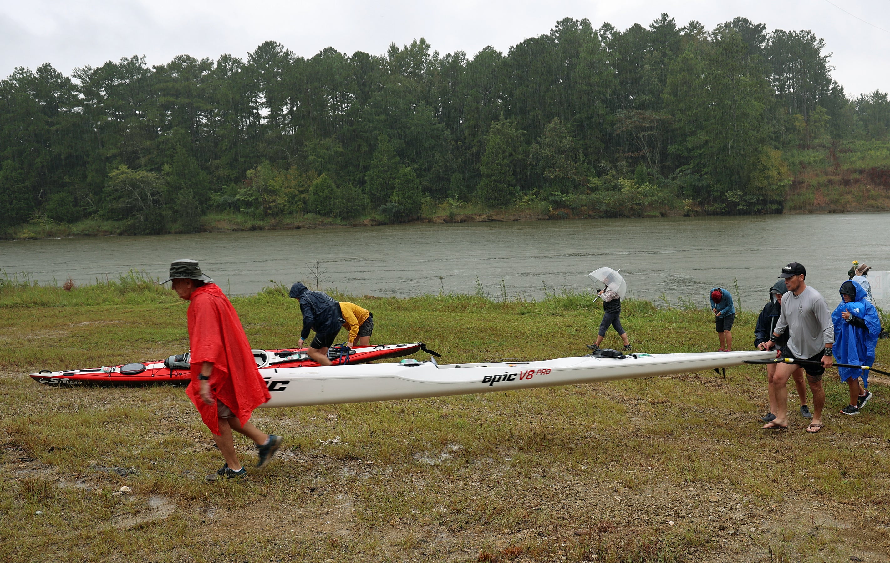 One reason the paddlers deem the AL650 one of the toughest courses is they have to portage around nine dams on the Coosa and Alabama rivers. Once they get to the Mobile River, the portages are finished, but then they must deal with the unpredictable conditions on Mobile Bay.