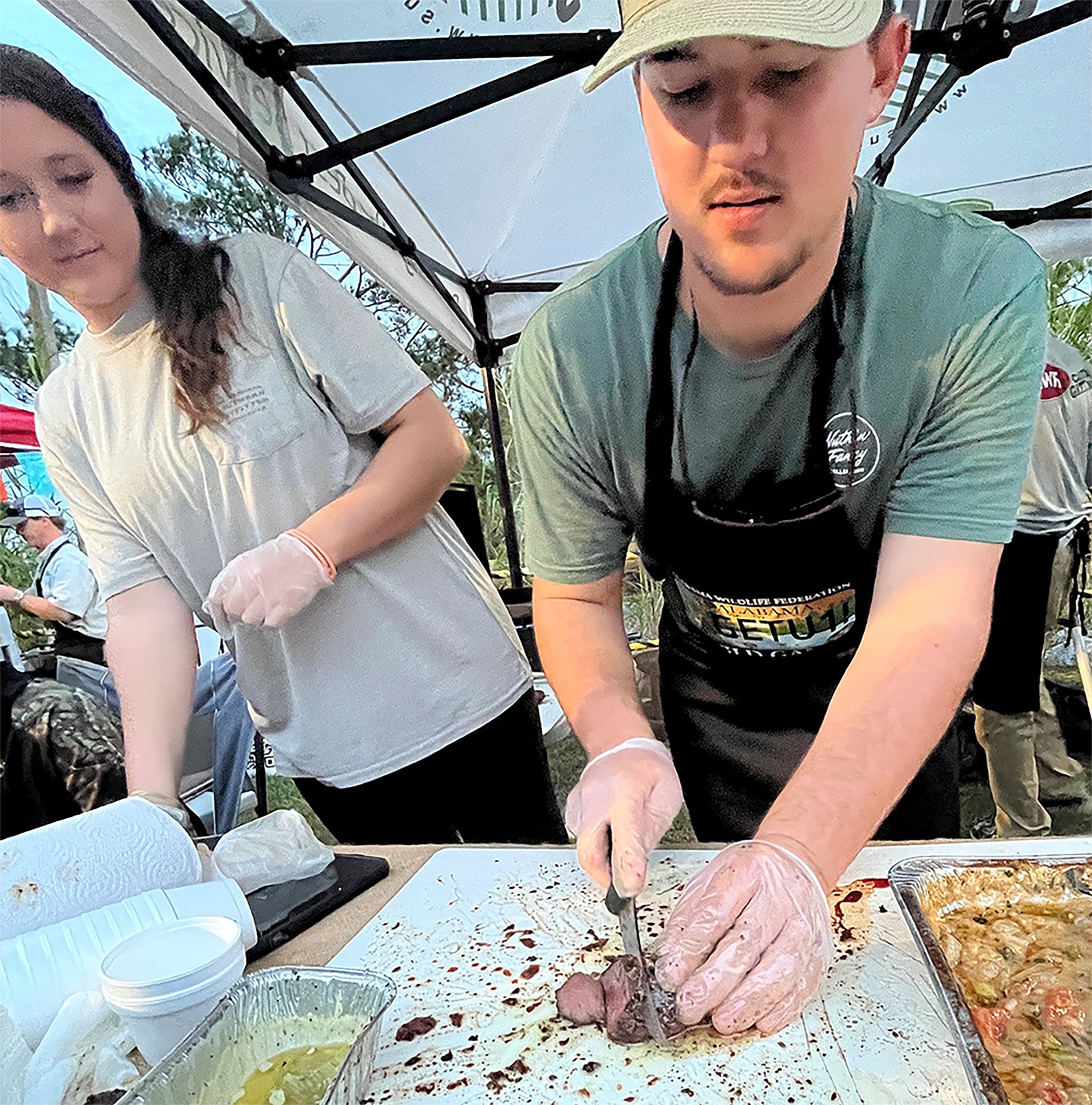 Haas said the cooking team members decided on venison because their freezers were well stocked with deer meat. After perusing several recipes, Haas added his own flare to the dish with a dipping sauce made with the pan drippings from the slow-cooked venison and spice blend.