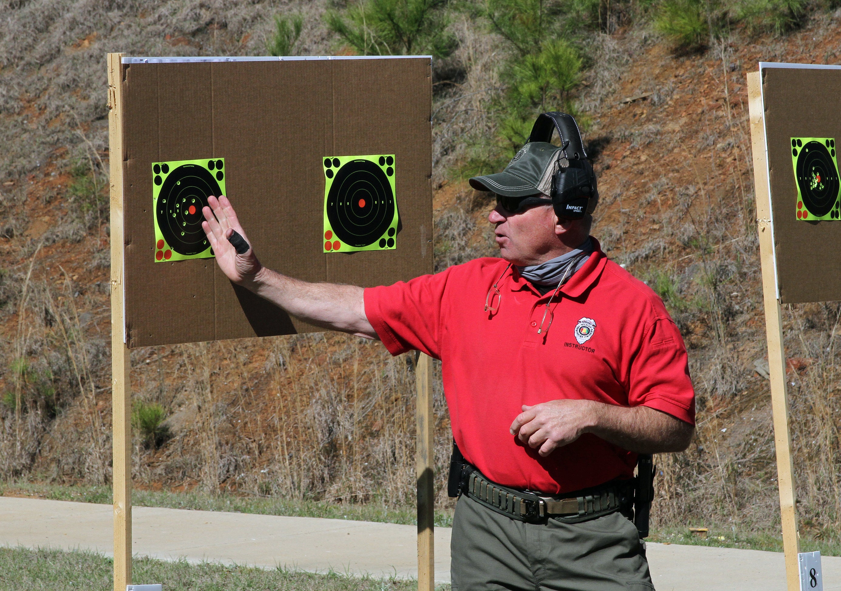 Lead firearms instructor Scott Kellenberger, one of only a handful of Alabama Peace Officers Standards and Training Commission certified master firearms instructors in Alabama, explained to the students the basics of firearms safety – always treat all firearms as if they are loaded; never allow the muzzle of the firearms to cover anything you are not willing to destroy; always keep your trigger finger off the trigger until your sights are on the target and you have made the conscious decision to fire; and always be sure of your target and what is beyond.