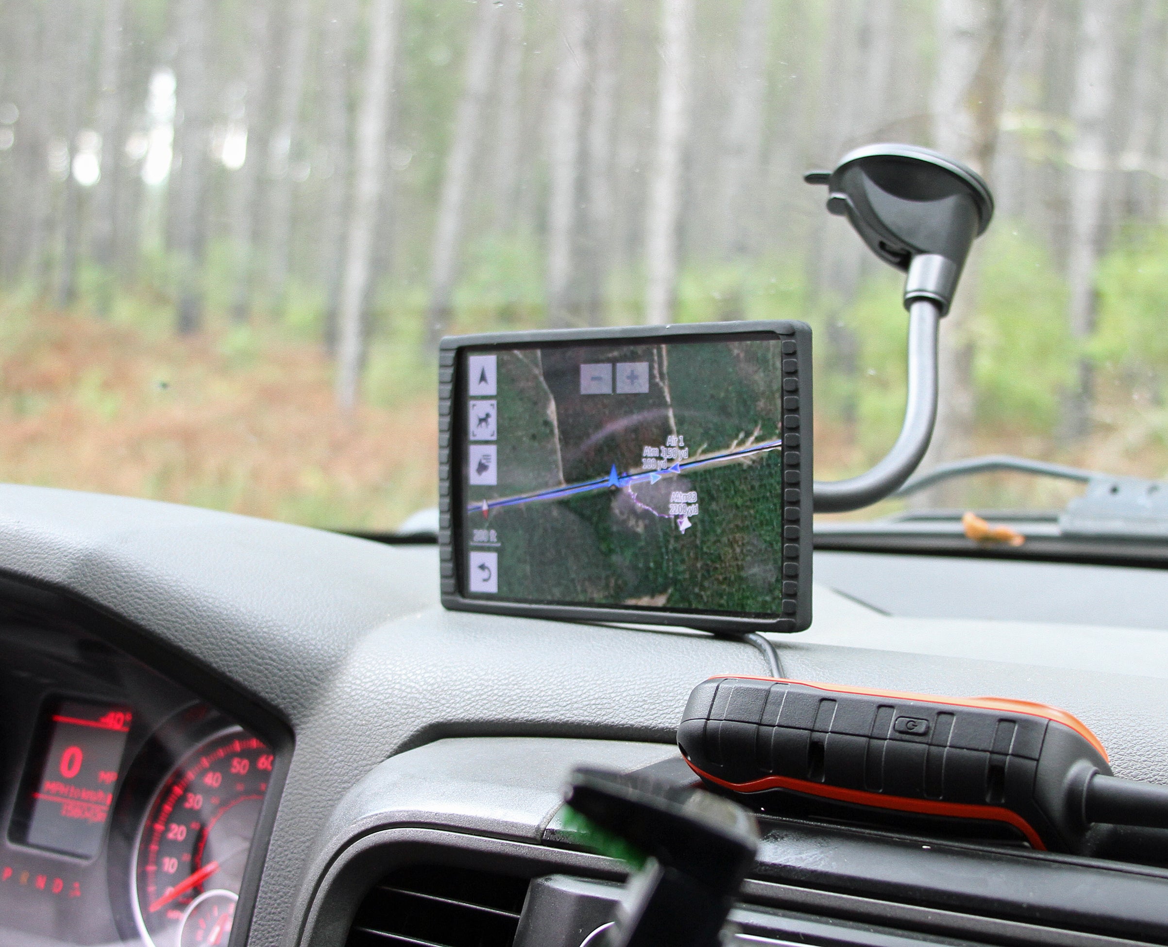 Hitching a ride with McHenry and Kiser, we loaded into McHenry’s vehicle equipped with the Garmin DriveTrack tracking receiver and rode the perimeter as the WFF K-9 Unit unloaded their tracking dogs to pick up the scent at the site where the suspect entered the woods.