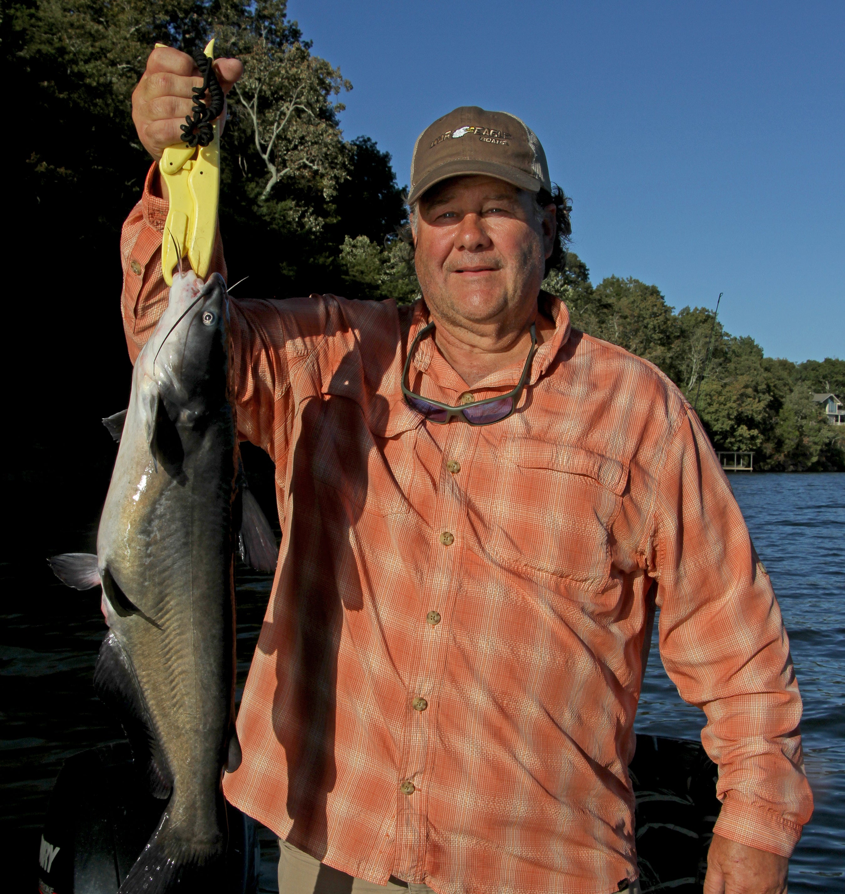 After loading Barton’s 23-foot War Eagle boat onto the trailer, we found gizzard shad flicking near the boat ramp on Wheeler. We headed to the Wheeler tailrace with a bait tank filled with the 2- to 3-inch shad. Obviously, as anyone who has fished the tailraces knows, the most productive time to fish is when the generators are running and the water is flowing through the dams.