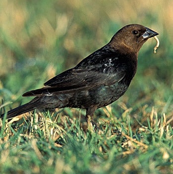 The Brown-headed Cowbird is a brood parasite, which means they do not build their own nests. Instead, the females will lay their eggs in nests of other species. This allows for the young cowbirds to be cared for and reared by other host species. Because the female cowbirds do not expend energy on nest building and brood rearing, they are able to lay up to 40 eggs per season in other species’ nests.