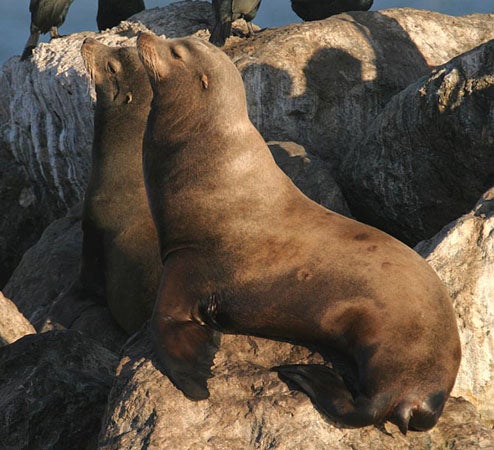 California sea lions are opportunistic eaters, feeding on shell fish, squid, octopus, herring, rockfish, mackerel, and small sharks. In turn, sea lions are preyed upon by Orcas (killer whales) and great white sharks.
