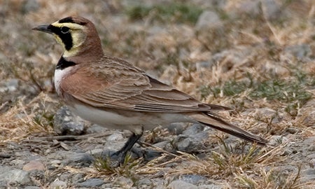 Found in open country habitats with short grass and bare ground patches, cultivated fields, and stubble fields.