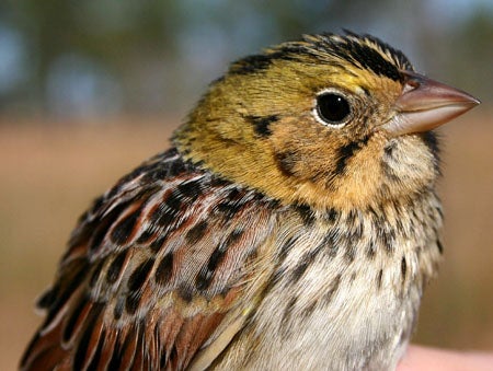 Western subspecies breeds in grasslands that contain tall, dense grasses, a high percent coverage of standing dead vegetation, and relatively few shrubs (Zimmerman 1988). Occupied both native and non-native grasslands in Illinois, and size of grasslands appeared more important than vegetative composition; grasslands less than 100 hectares (247 acres) rarely occupied (Herkert 1994). Winters predominantly in open longleaf pine savannas, primarily coastal savannas and pitcher plant bogs (Plentovich et al. 1999). Habitats occupied during the breeding and nonbreeding seasons require frequent disturbances to maintain a dense herbaceous ground cover and to prevent encroachment of shrubs. Densities wintering on pitcher plant bogs in southern Alabama and northwestern Florida greatest the first winter after burning (Tucker and Robinson 2003). Although commonly found on bogs during the second winter after growing season fires, they were rarely found on bogs burned during winter except during the first winter post-burning. Productivity of grass seeds and density of forbs appeared to be most influential factors affecting presence on pitcher plant bogs (Tucker and Robinson 2003).