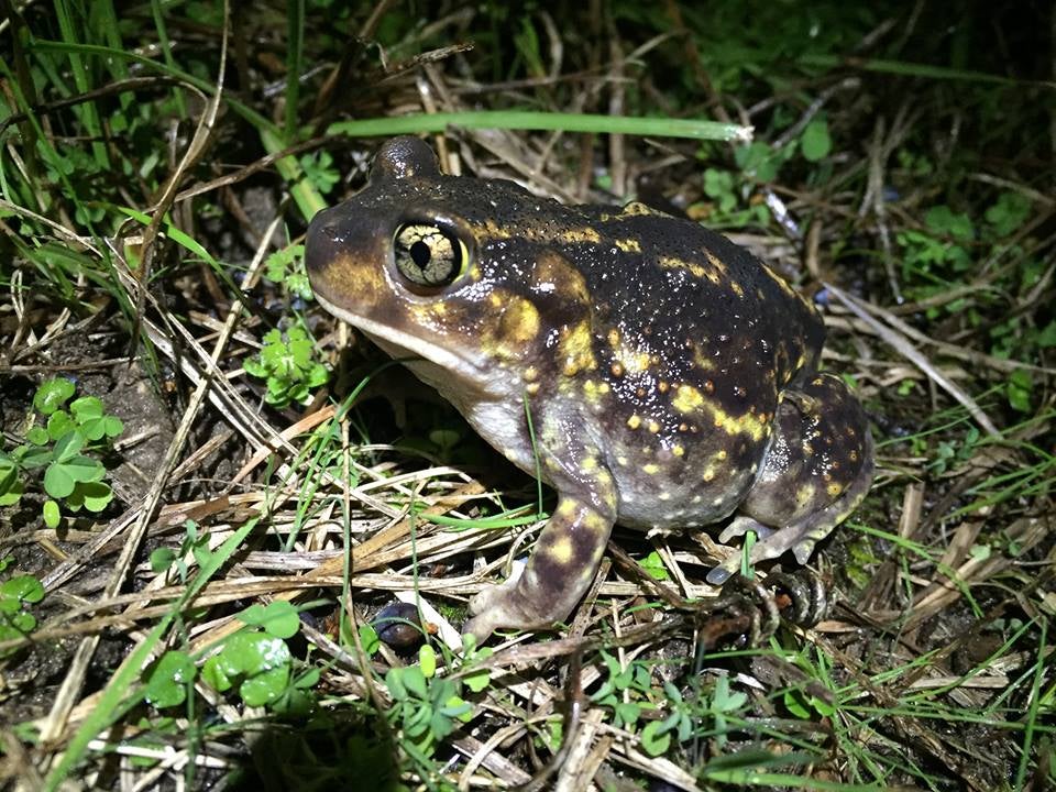 The Eastern spadefoot toad is a burrowing variety of frog that is secretive, emerging from its shallow burrow only at night on heavily overcast days. The surrounding habitat is usually forested, brushy, or cultivated areas of sandy, gravelly, or loose loam.