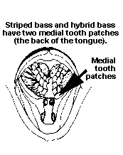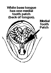 Yellow bass can be identified because they do not have a tooth patch on their tongue and the second spine of the anal fin is longer than the base of the anal fin.