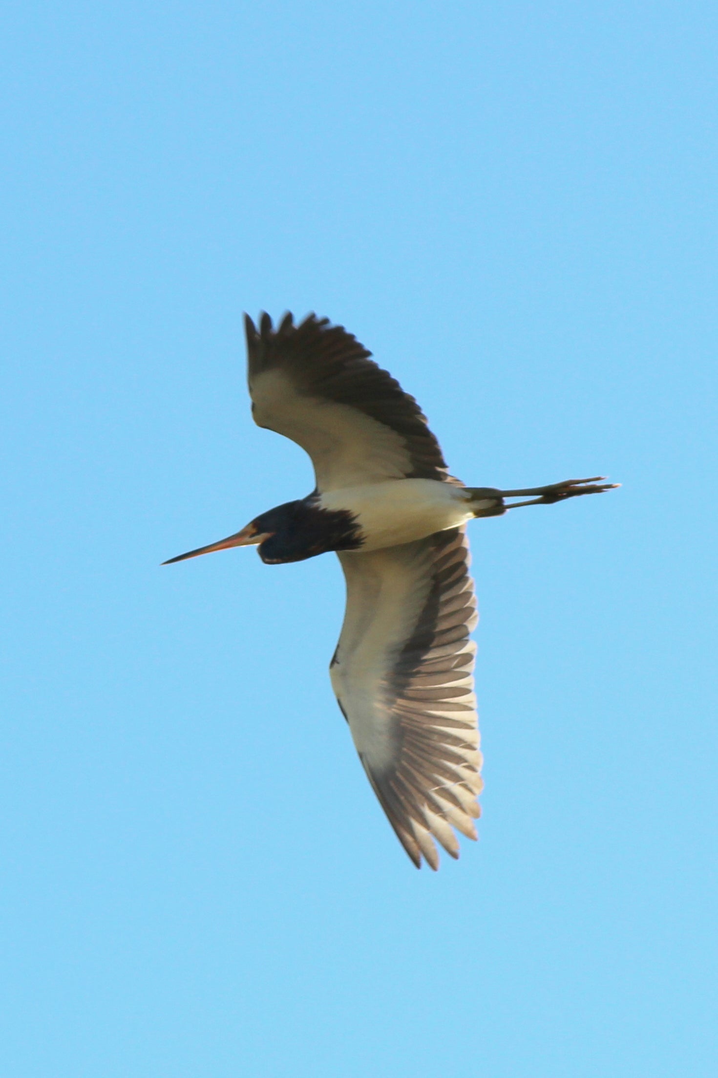 Juvenile tricolored herons have a color pattern similar to adults. However, they have a rufous or reddish brown color to their necks and shoulder area on their wings. Their legs and bill are yellow, the back is bluish gray, and belly is white.