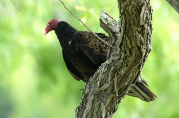 Turkey vultures are primarily scavengers readily feeding on carcasses of dead animals, including road kill and dead fish that have washed up on the banks of rivers, ponds or lakes, but will sometimes feed on plant matter and small insects and rodents. Turkey vultures are unusual among birds in that they have a highly developed sense of smell. This sense of smell and very keen eyesight enable them to find food rather easily. Turkey vultures can often be seen circling on patches of warm rising air, called thermals. From aloft, they glide across the sky searching for food. Turkey vultures are very efficient flyers and can glide for hours without flapping their wings.