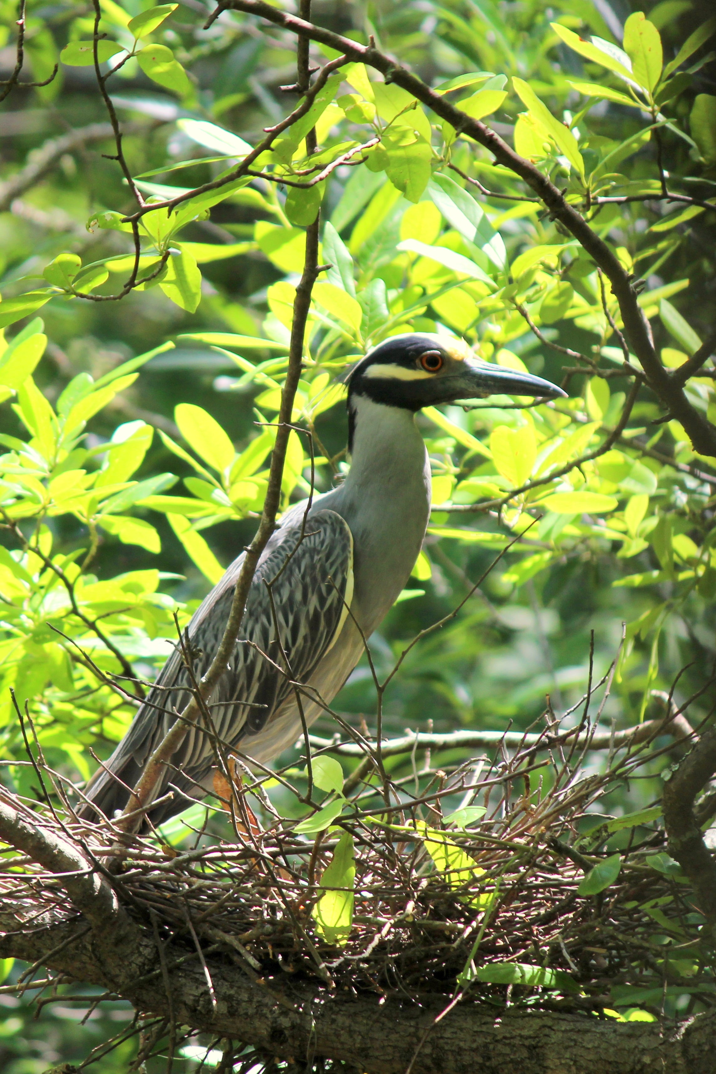 The yellow-crowned night heron’s diet consists mainly of crabs and crayfish. They will also eat fish, eels, mussels, frogs, tadpoles, insects, snails, and small snakes. They forage primarily during dawn and dusk using the still-hunting method, but they will also stir up prey with their legs and stab food items with their bill.