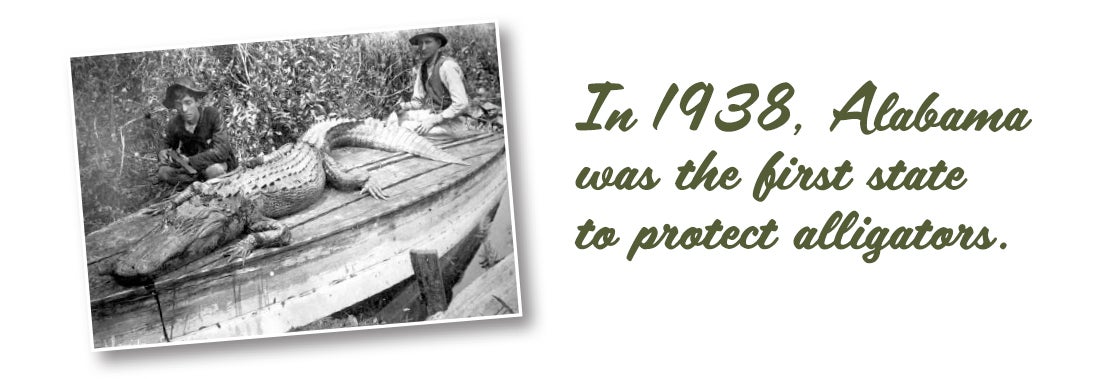 Unregulated alligator harvest throughout the South in the early 1900s threatened the species with extinction. Alabama played a leading role in the restoration of the American alligator—a national conservation success story.