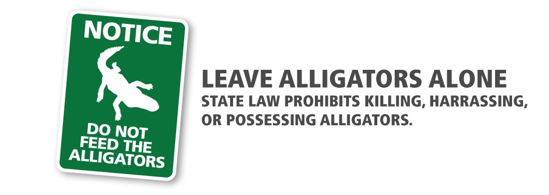 - Leave Alligators Alone – State law prohibits killing, harassing, or possessing alligators. Handling even small alligators can result in injury.