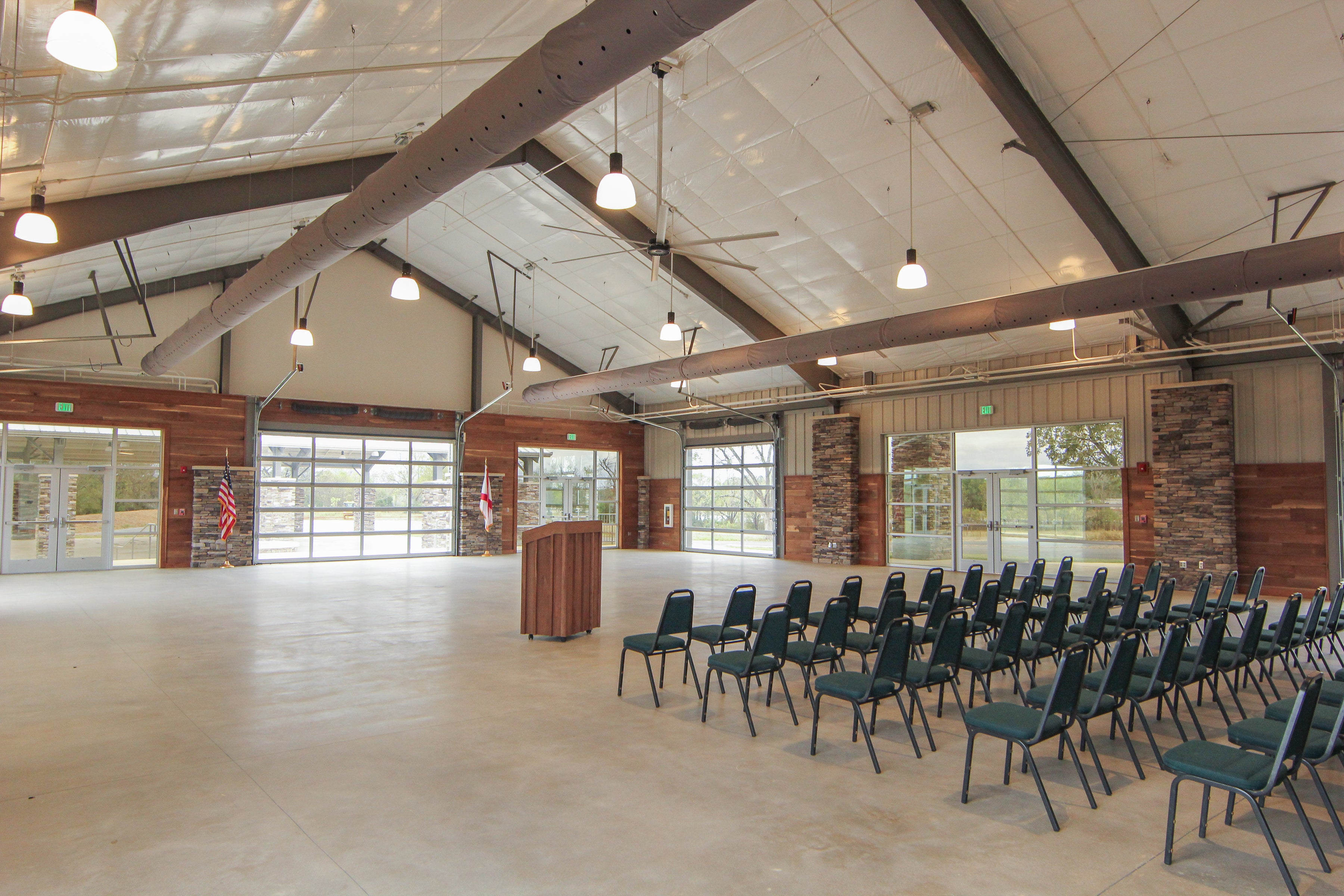 The new 5,000-square foot Event Center is an ADCNR facility located on State Lands Division property at the FWFTA. The center can be converted into an open air meeting space and features bathrooms and a limited kitchen facility. A new 4,000-square foot pavilion was also constructed adjacent to the Event Center. The Event Center, pavilion and parking area are ADA (Americans with Disabilities Act) accessible.