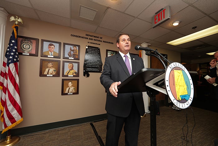 The officers were recognized today through the dedication of a memorial wall in their honor at the Department of Conservation and Natural Resources headquarters office in Montgomery.