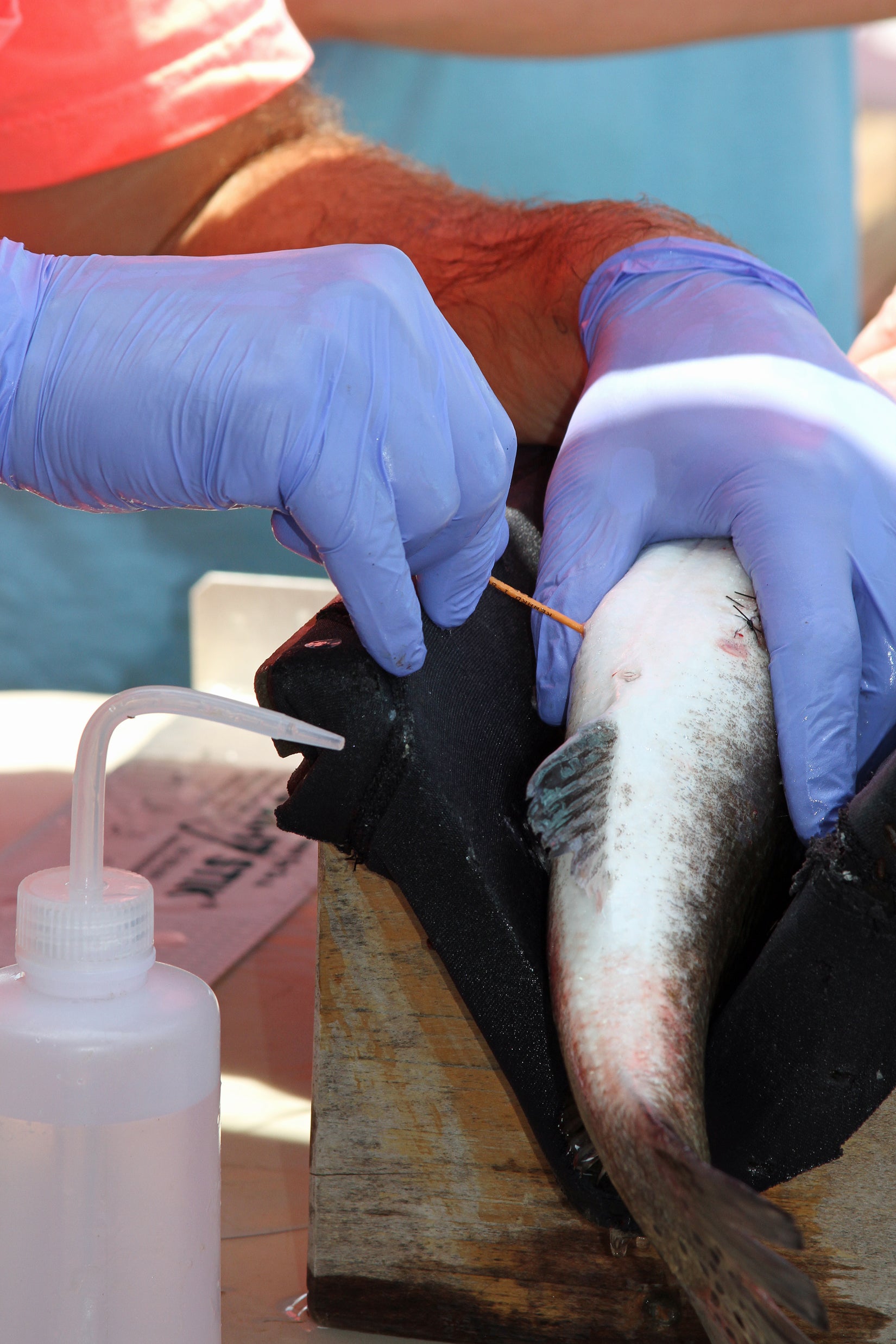 While the fanfare surrounding the Alabama Deep Sea Fishing Rodeo (ADSFR) proceeded nearby, Reid Nelson deftly made a series of surgeon’s knots to sew up an incision on the belly of a redfish that was a part of the live weigh-in category at the rodeo.