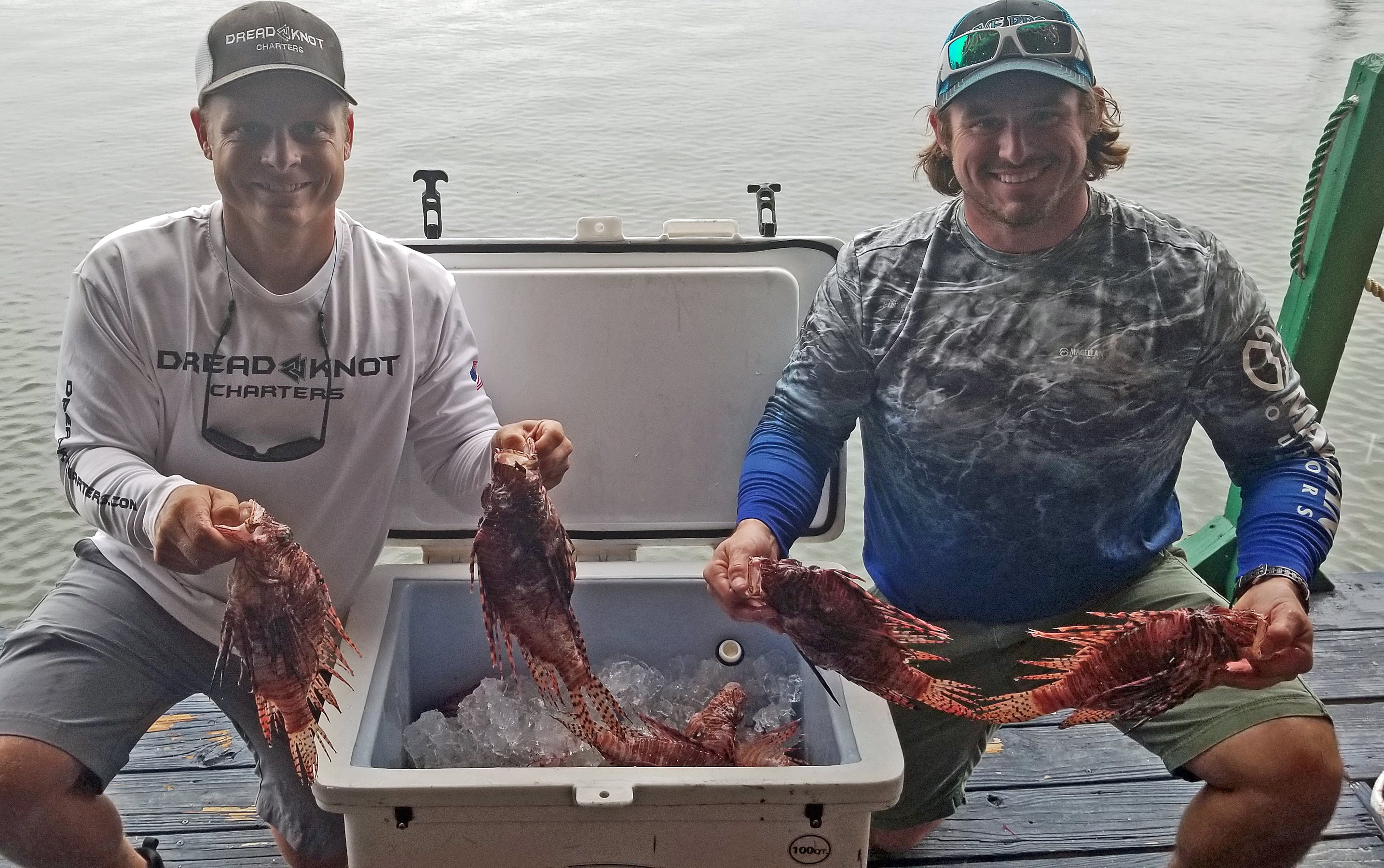 Livingston brought in about 650 pounds of lionfish at the first tournament in the spring. He said the number of fish he spotted over this past weekend was definitely reduced. An ulcerative skin disease has been observed in lionfish, especially in Florida, and Livingston thinks that may be a reason for the reduction.