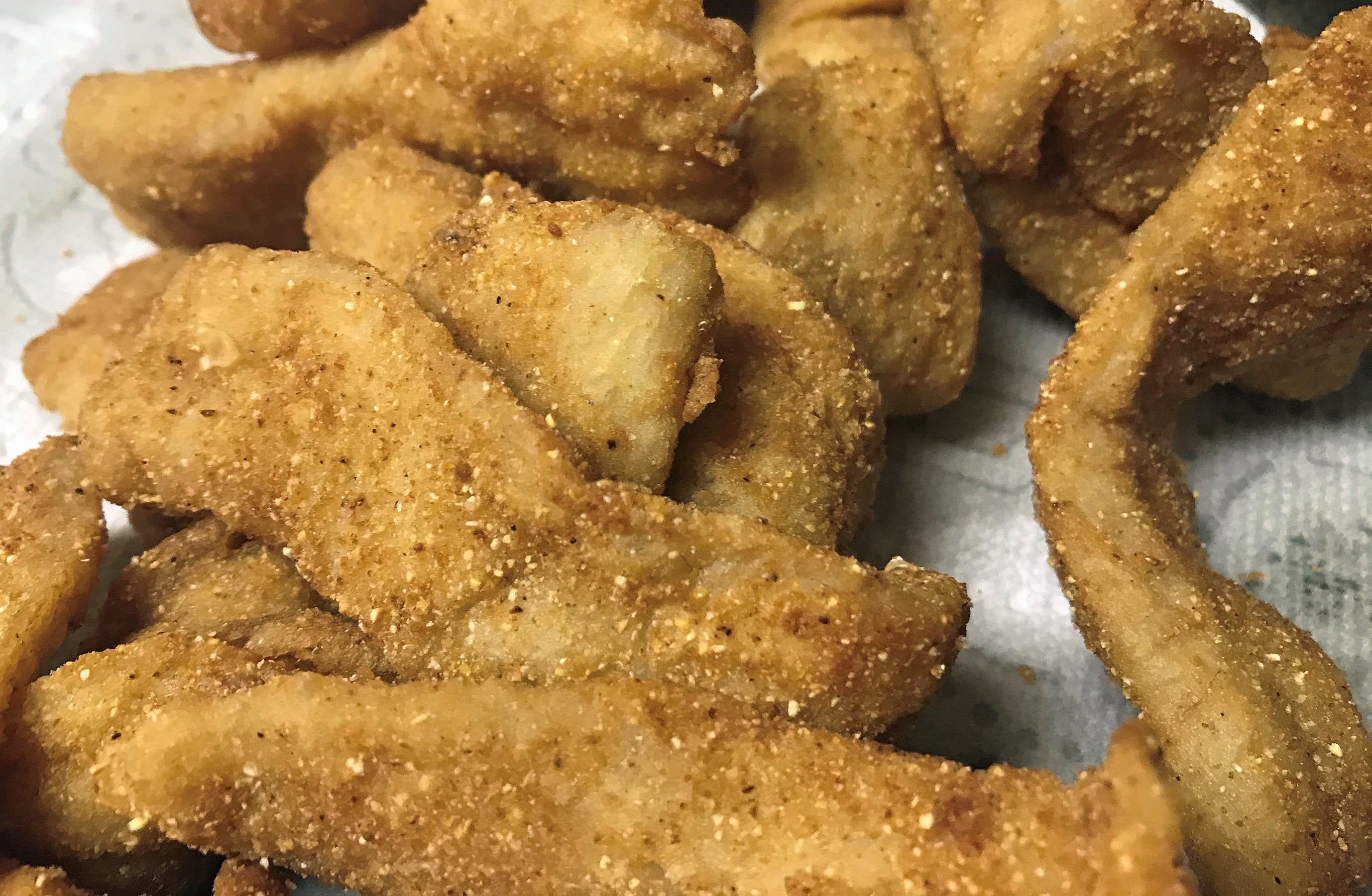 Adams uses 10-foot B&M poles and spinning reels with 6-pound-test, high-viz line. When the fish are deeper in the winter, he uses a No. 2 gold hook and a split-shot pinched 12 to 18 inches above the hook. If it gets a little windy, he’ll use a second split-shot to keep the bow out of his line.
