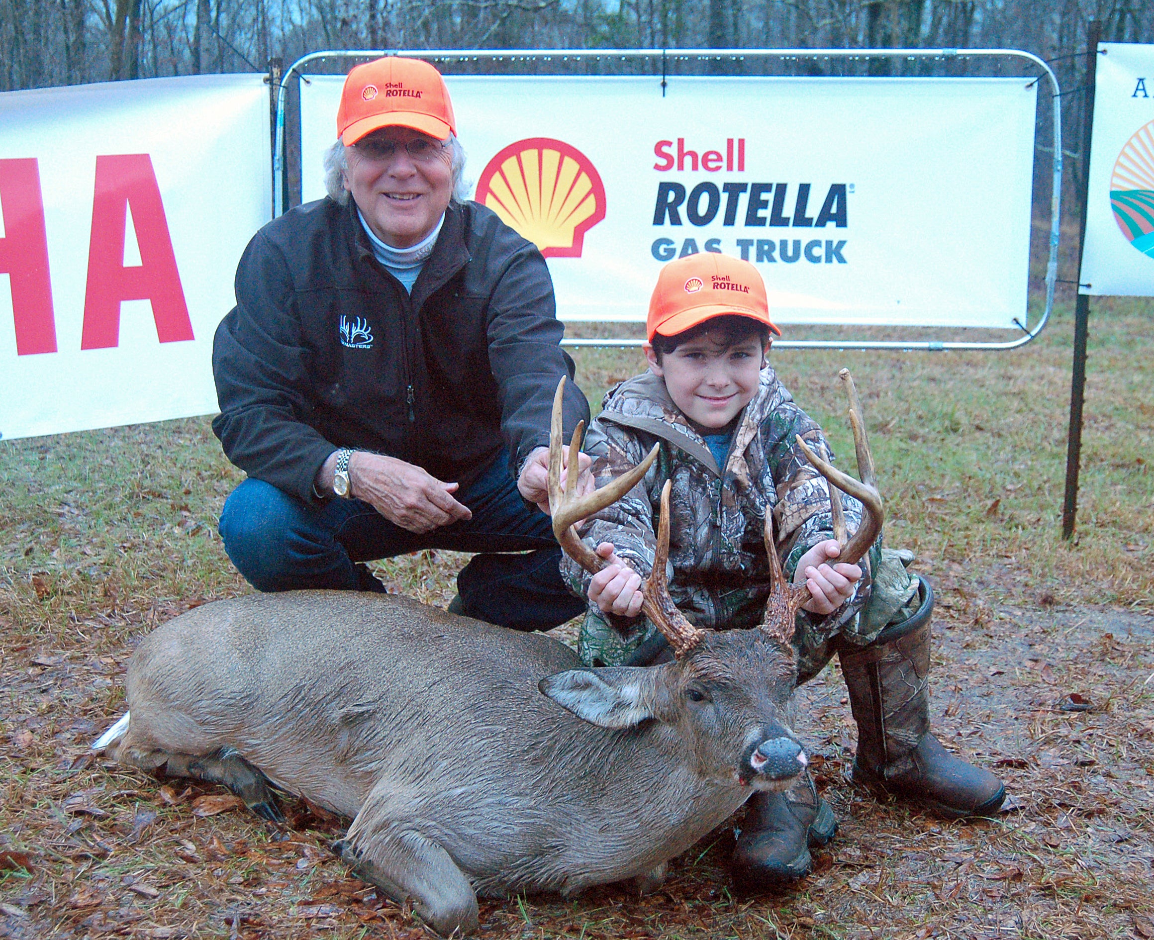 Colton, 9, braved the intermittent downpours to bag a beautiful 10-point buck on the second day of the hunt.