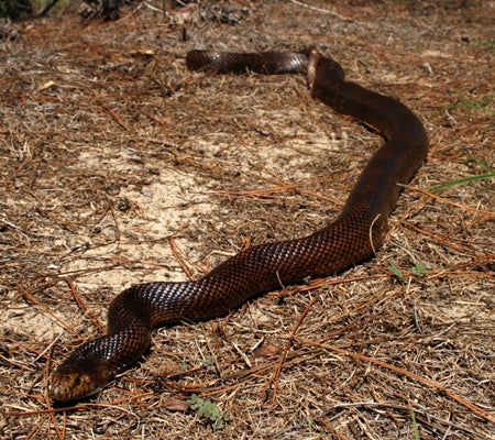 Previous reports (Jennings and Fritts 1983, Mount 1986, Sweet and Parker 1990) assumed heavy reliance on gopher tortoise burrows, but a Mississippi radiotelemetry study (Duran 1998b) found them to be rarely used, even where abundant. Much time was spent underground in root channels of rotting pine stumps, and the mean home range size was 47.5 hectares (117 acres). Principal prey is small mammals (cotton rats, mice, young rabbits), also some birds and bird eggs. Although not always prone to bite, a disturbed black pine snake may hiss loudly, vibrate the tail rapidly, and strike repeatedly.