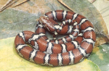 Red milk snakes are usually associated with dry, open woodlands and woodland edges. They seek shelter in rock outcrops and under logs.