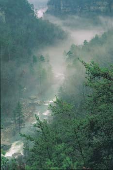 With cliffs towering some 600 feet above the river and with scenic waterfall vistas, the Little River Canyon of northeast Alabama reminds one of the Yellowstone River Canyon. Falling 1,350 feet over twelve miles, the Little River"s rocky streambed, two waterfalls, and Class VI rapids (expert), offers more similarities to the western river. The Little River flows atop a plateau until it spills into Lake Weiss. The National Park Service calls the Little River Canyon, "one of the most extensive canyon and gorge systems in the eastern United States and one of the South's clearest, wildest waterways." The Alabama Environmental Council considers it one of "Alabama's Ten Natural Wonders."