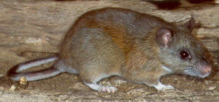 Eastern wood rats are primarily nocturnal species though they may occasionally be abroad on overcast days. They make their homes in hollow trees, holes in the ground, or nests of sticks, leaves, and rubbish constructed along stream banks, in dense tangles of cabbage palmetto or, rarely, in trees. This species lines its nest with various man-made items, especially shiny objects. It usually defecates outside of the nest in a common area. These rodents tend to be aggressive toward one another outside of the breeding season. Breeding usually begins in early spring and may last into the fall months in the South. Gestation lasts 30 to 36 days and litter size is usually 1 to 3 animals. Young are nursed in the nest until about four weeks old. Individuals have been known to live 33 months in the wild. When the eastern wood rat is frightened or excited, it will chatter its teeth, vibrate its tail, and thump its hind feet. They are preyed upon by foxes, weasels, owls, wild cats, and various other predators.