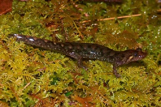 Seal salamanders are members of the family Plethodontidae, the lungless salamanders. Lungs are absent in these species and respiration is accomplished through the skin and the lining of the mouth. An average sized but stout-bodied salamander which grows to about three and one-fourth to five inches long the record length is five and seven-eights inches. The tail, comprising about half the total length of the body, is compressed and knife-edged-shaped on the top near the tip. Distinctly patterned on the top but plain and pale underneath, there is usually a distinct lateral separation in color from top to bottom. The colorations on the back vary from light brown or gray to deep black or dark brown.The color patterns are usually arranged in a net-like to circular pattern. Some are even simply patterned with dark or light spots or streaks. In Alabama, it is common to find specimens with the least amount of color patterns. Adults may lose all traces of color variation. The bottom is white in juveniles, but light gray or brown in adults. There sometimes is a row of light dots on the sides between the legs. Old adults may become purplish-brown with only a few dark markings. The young have about four pairs of round orange-brown spots down their back.