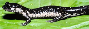 The Southeastern Slimy Salamander is large woodland salamander averaging 4-7 inches in total length. Like other slimy salamanders, this species is colored black to bluish-black with widely scattered white or brassy flecks. This flecking pattern varies among individuals and may occasionally merge to create a white, highly mottled pattern along the sides of the body. The belly is typically colored a uniform black.