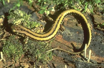 Found in similar shaded habitats as two-lined salamander, including forested floodplains.