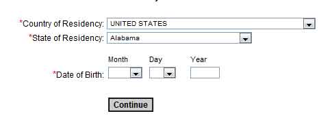 Step 1: Enter your Residency and Birthday...press "Continue" to proceed