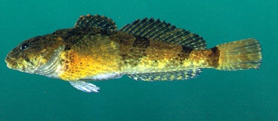 CHARACTERISTICS: The banded sculpin can be distinguished from the mottled sculpin by a less robust body, intense dorsal saddles with dark edges, and somewhat longer snout. Dorsal saddles or bands across the back on mottled sculpins are less defined and more mottled, and the head is longer with a shorter snout. Banded sculpins lack banding in the spiny dorsal fin, but rays in the second dorsal and caudal fins have distinct light and dark banding that runs the length of the fins. The lateral line is generally complete.