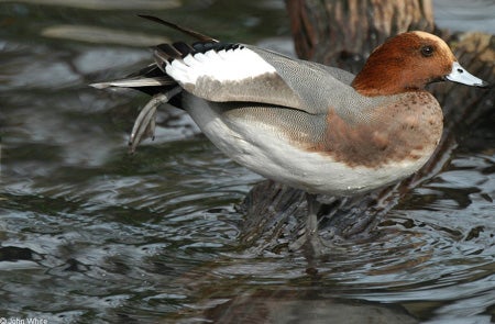 Occasional in winter, spring, and fall mostly in the Tennessee Valley region. Associates with American wigeon.