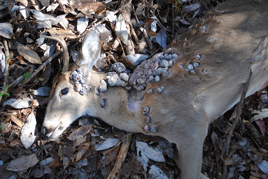 The viruses that cause fibromas in deer are species-specific, so other wildlife species and livestock should not be affected. These viruses are also not known to infect humans.