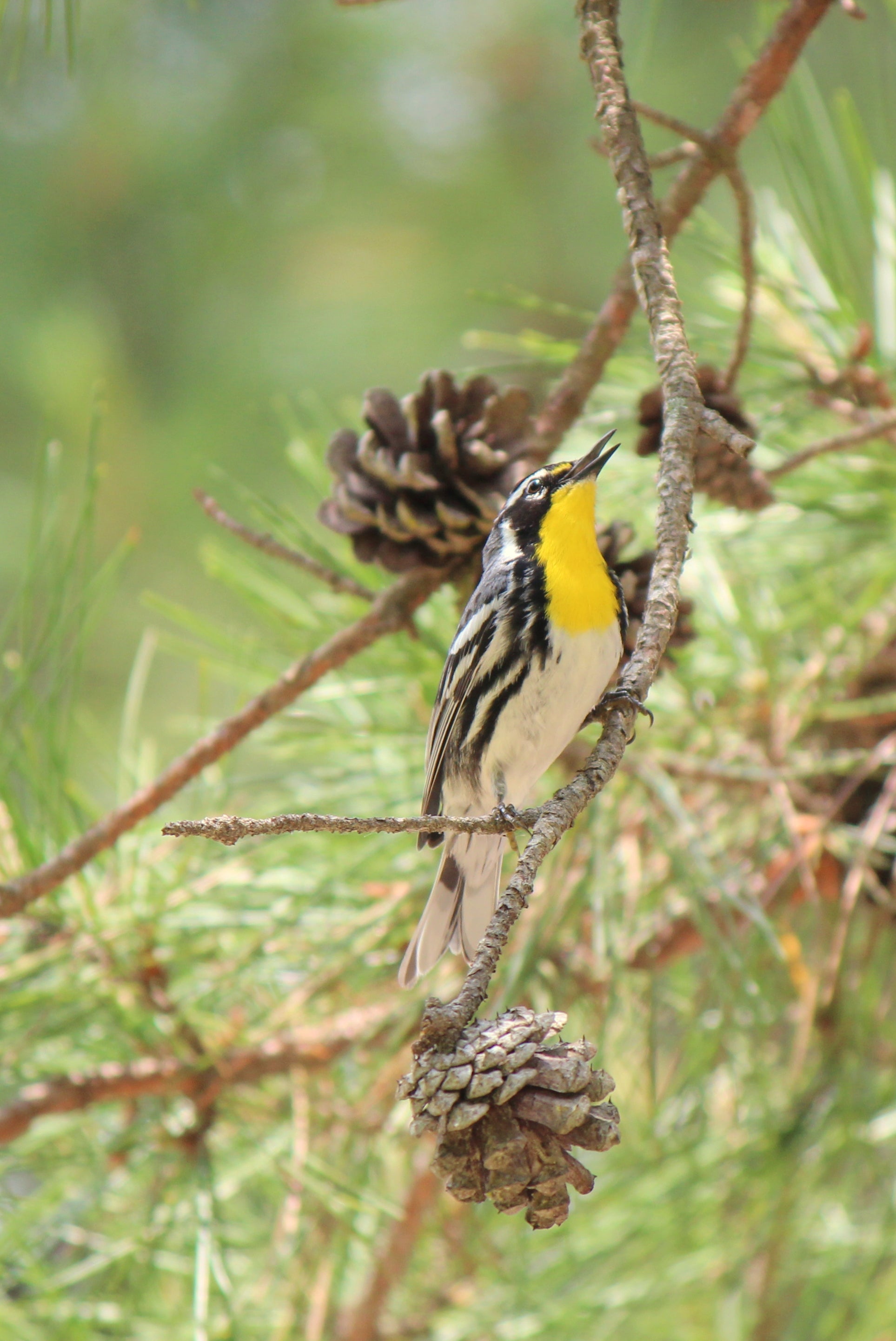 In breeding season, found in older pine forests and woodlands with sycamores, especially near water. During migration, found in woodlands.