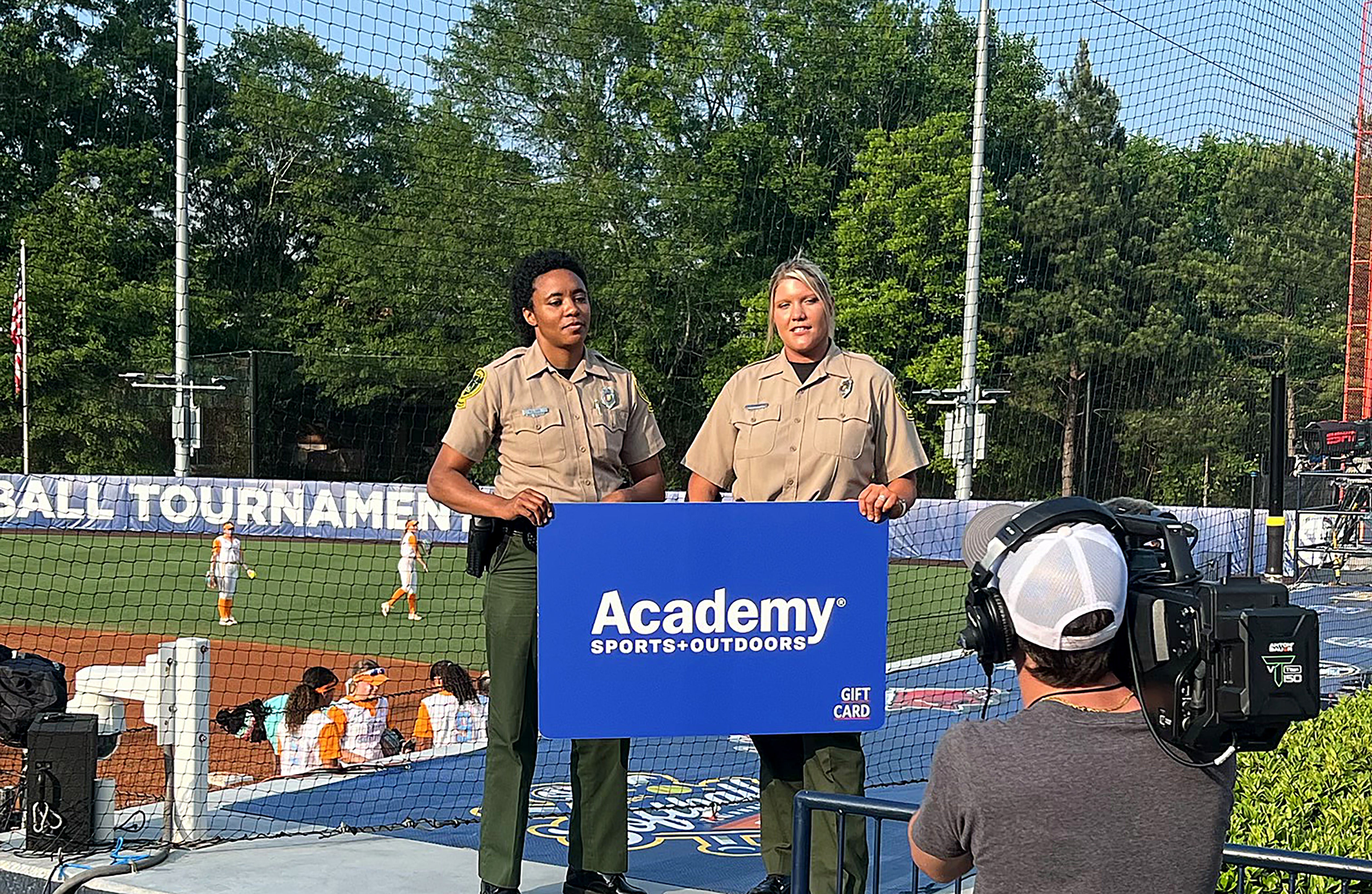 As part of the SEC Softball Tournament last week at Auburn University, eight female Conservation Enforcement Officers (CEOs) from the Alabama Department of Conservation and Natural Resources (ADCNR) were honored during the tournament and with a shopping trip by Academy Sports + Outdoors at its Auburn location.