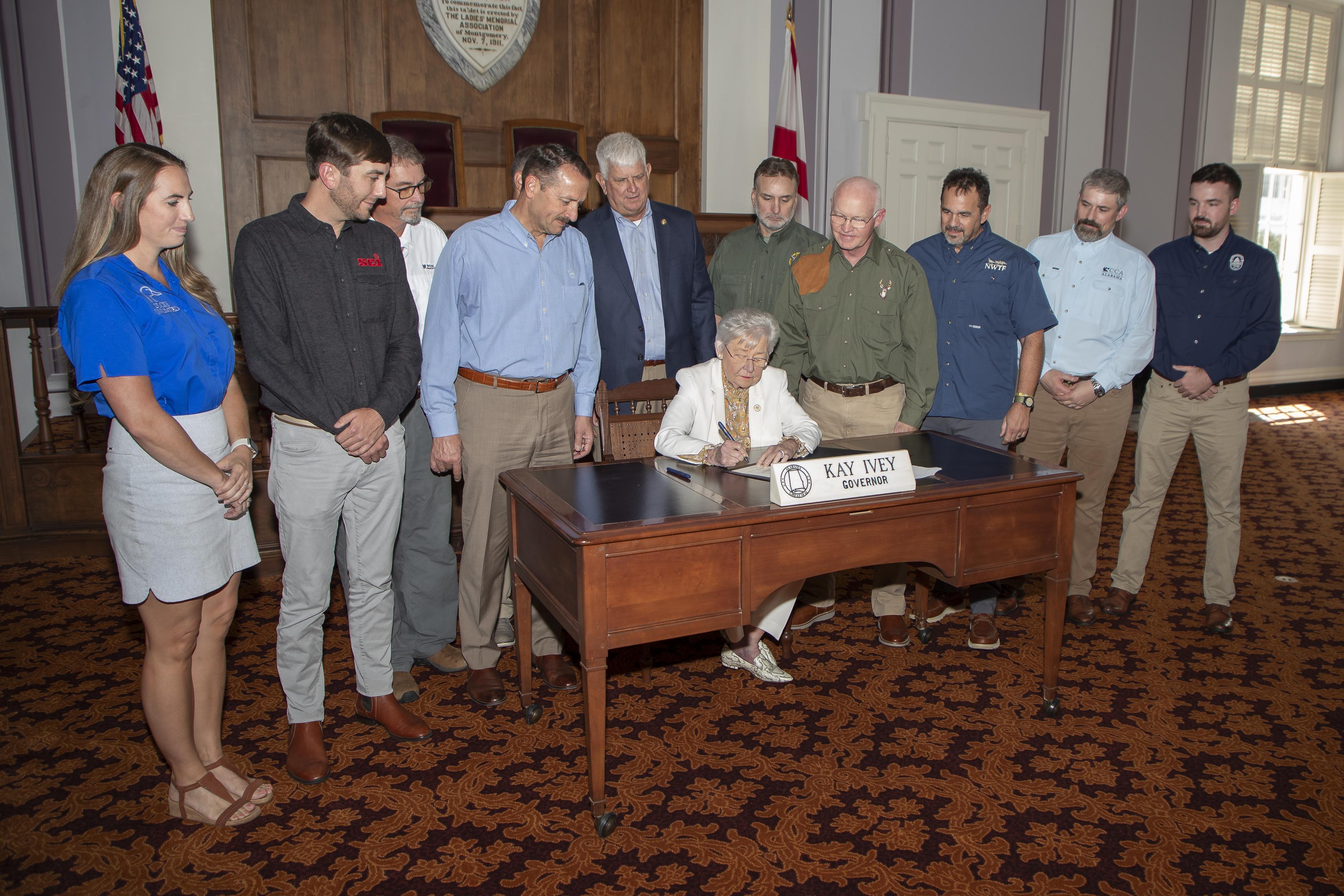 Governor Kay Ivey on Thursday signed a proclamation celebrating National Hunting and Fishing Day which takes place on Saturday, September 28, 2024. Since 1972, the fourth Saturday in September has been designated as National Hunting and Fishing Day to highlight the vital role that hunting, fishing and shooting sports play in conservation efforts in the United States.