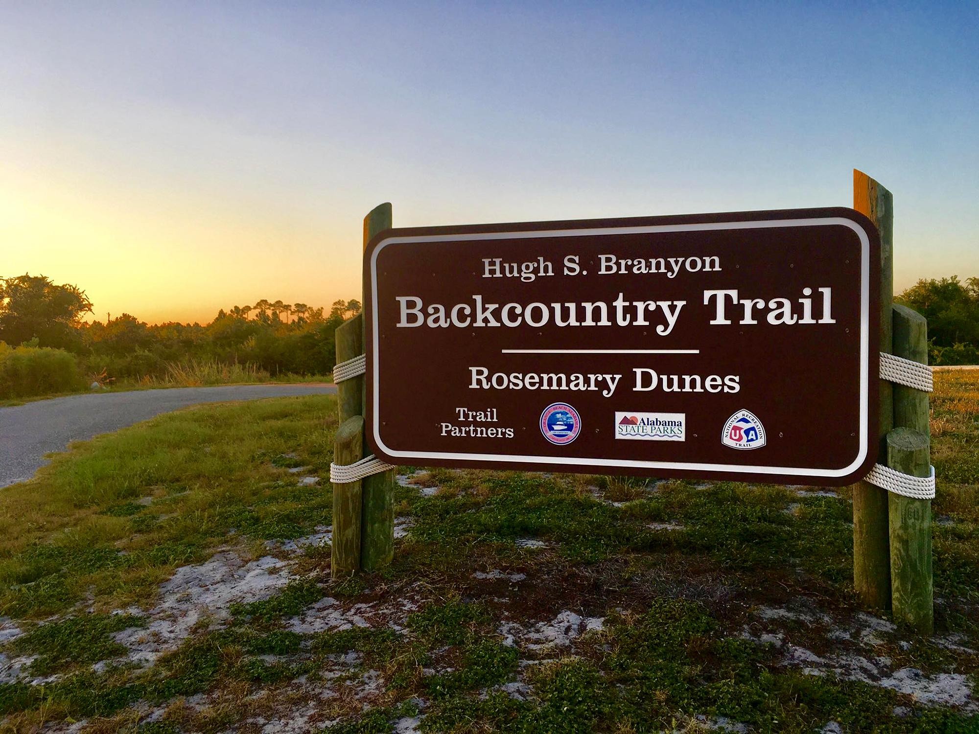 Established in 2003 as a multi-use recreational trail connecting Gulf Shores, Orange Beach and Gulf State Park, the trail is a system of paved and unpaved paths and boardwalks providing trail users with access to several distinct ecosystems and outdoor recreational opportunities. Named in honor of Hugh Branyon, who served as superintendent of Gulf State Park for more than 30 years, the Backcountry Trail system features 29 miles of trails that are located within the park. Plans are currently in the works to expand the Backcountry Trail system.