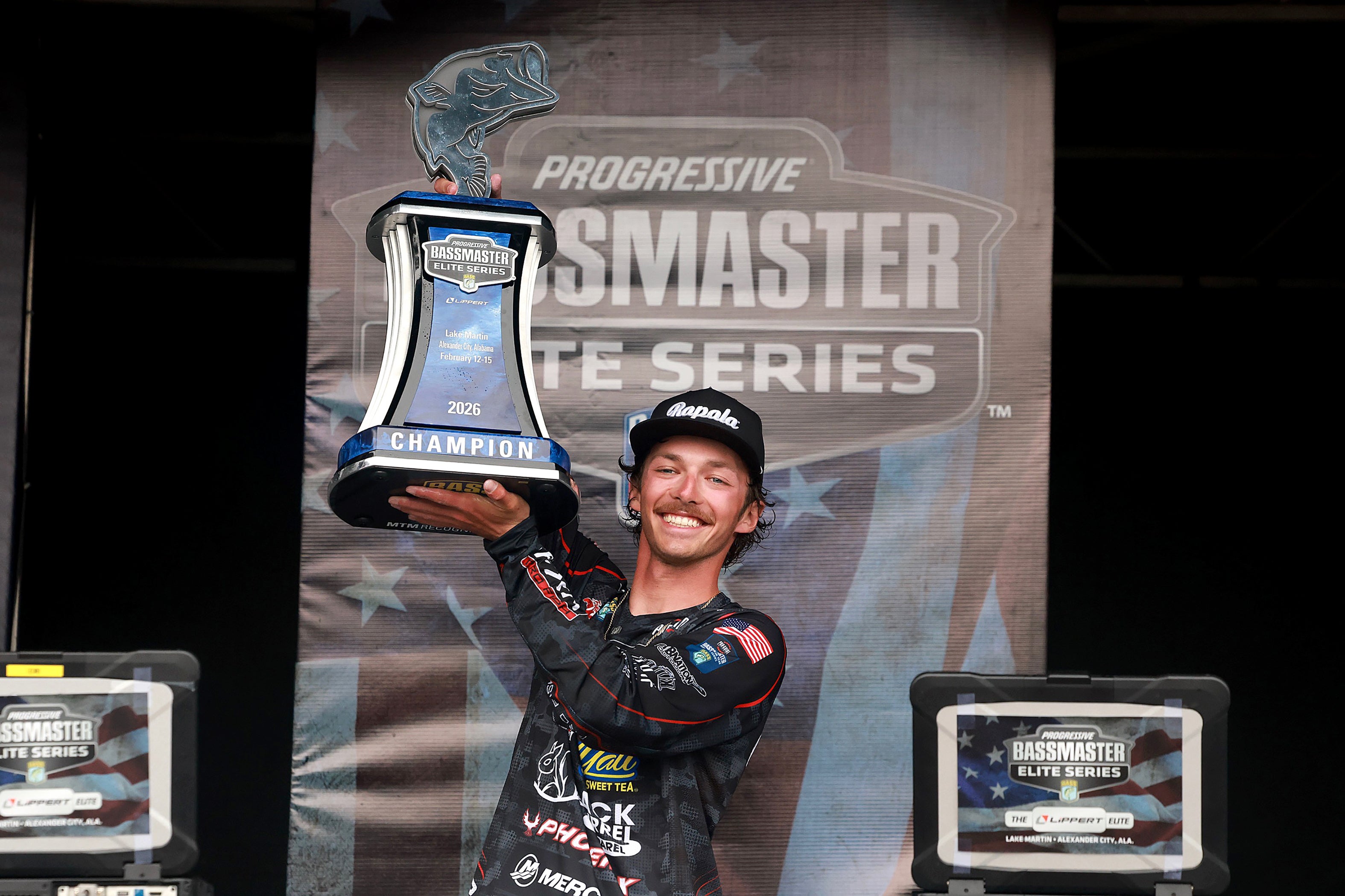 In fact, it was those spotted bass that lifted Fisher Anaya, a 21-year-old Elite Series rookie from Eva, Alabama, to victory in the four-day event. Anaya caught a limit of spots that weighed 15 pounds and 12 ounces during Sunday’s final round for a total of 54 pounds, 6 ounces, easily defeating runner-up Brock Mosley, who finished with 52 pounds, 14 ounces.