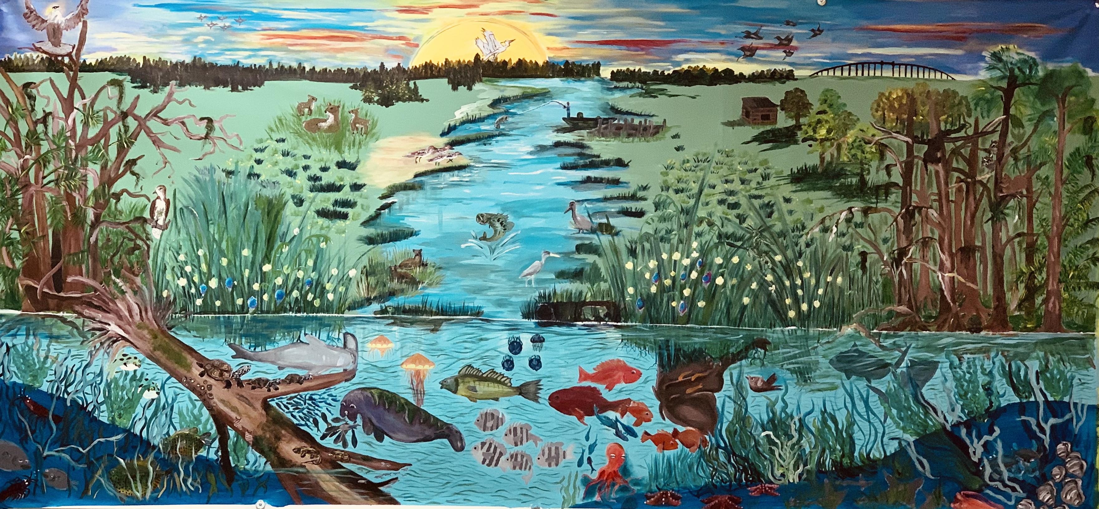 “I only had the students for three months before we took on this large task,” Hill said. “With help from the Weeks Bay Reserve we put together a 5-foot by 10-foot mural that represents our estuaries and the wildlife that inhabits them.”