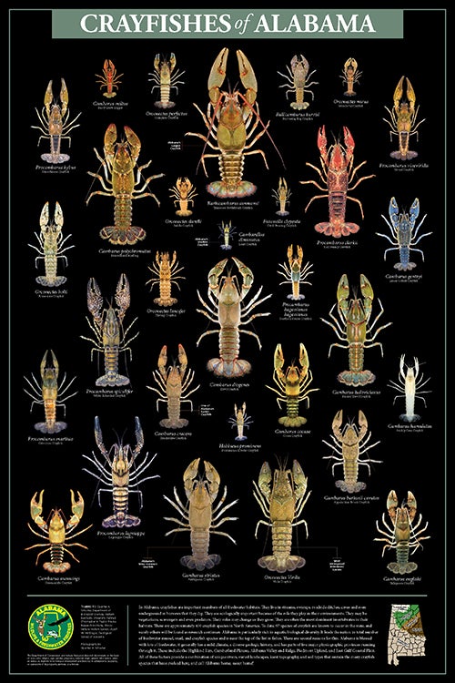 The "Crayfishes of Alabama" poster is available for no charge at Wildlife and Freshwater Fisheries district offices.